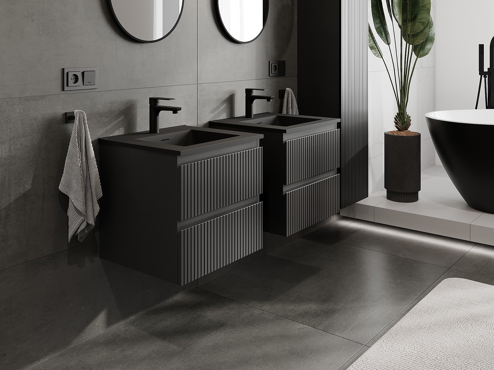 Mexen Rivel armário de casa de banho 50 cm com lavatório Otis, 2 gavetas, frisado, preto mate - 91A20-05047-2-BFF71-W18M71