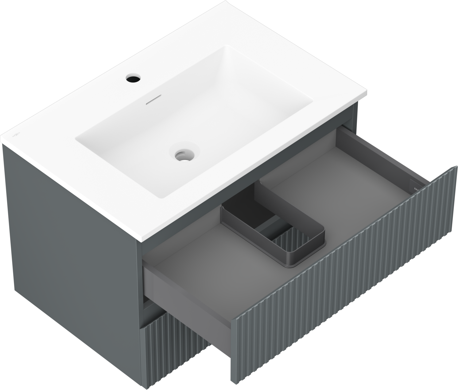 Mexen Rivel armário de casa de banho de 70 cm com lavatório Otis, 2 gavetas, canelado, grafite mate/branco mate -