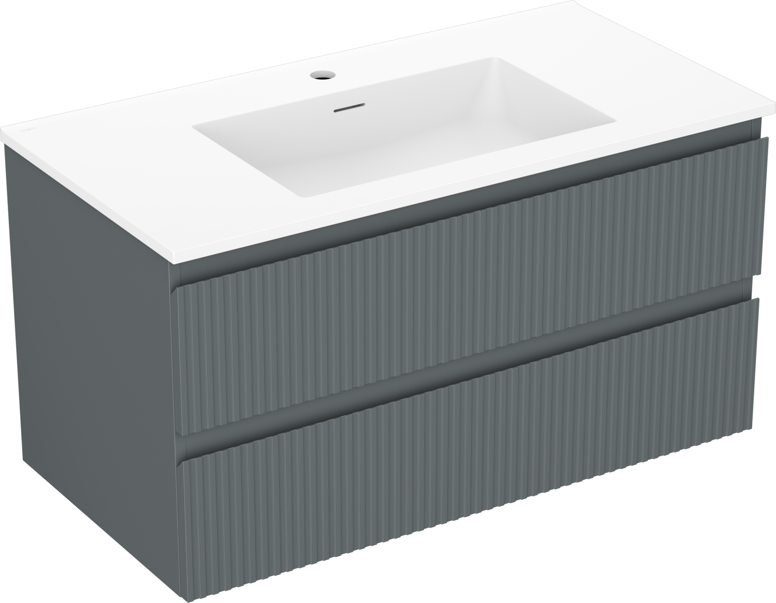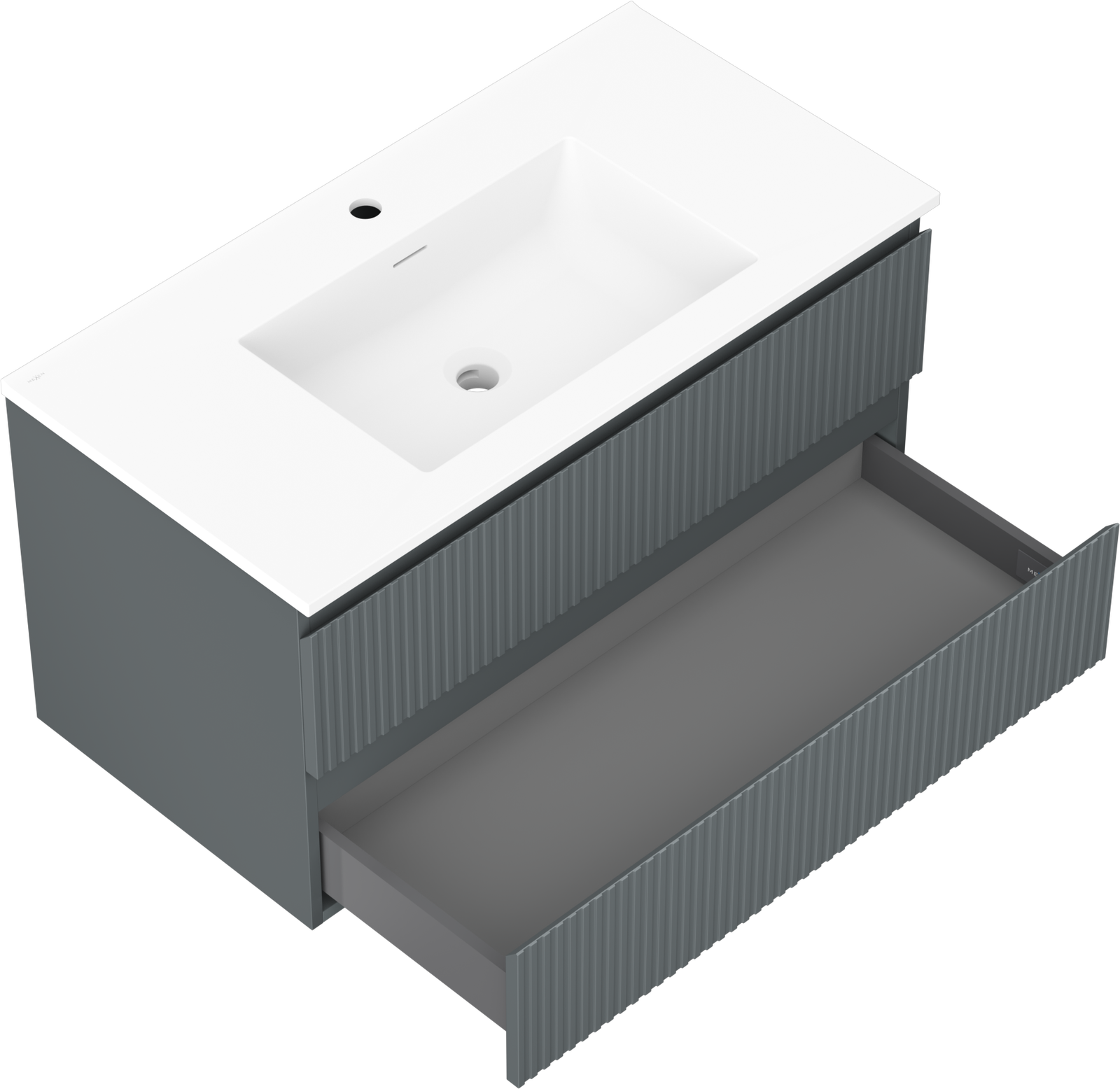 Mexen Rivel Armário de casa de banho 90 cm com lavatório Otis, 2 gavetas, ranhurado, grafite mate/branco mate -