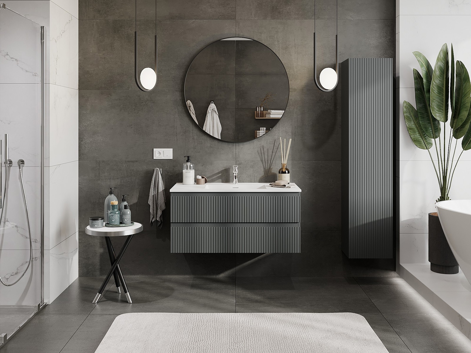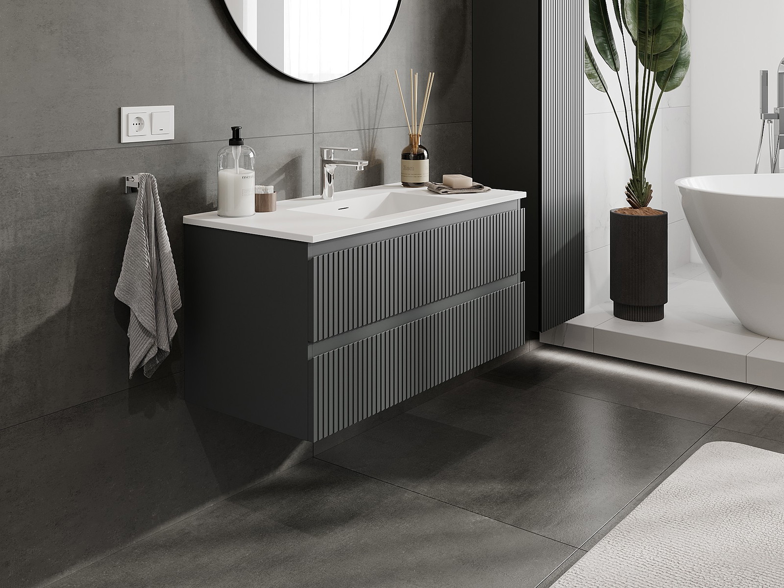 Mexen Rivel armário de casa de banho de 100 cm com lavatório Otis, 2 gavetas, canelado, grafite mate/branco mate -
