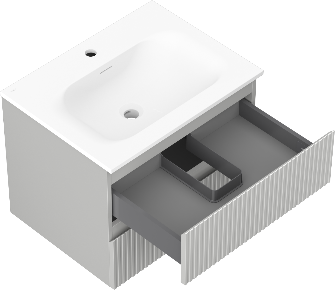 Mexen Rivel armário de casa de banho 60 cm com lavatório Vela, 2 gavetas, ranhurado, cinza mate/branco mate