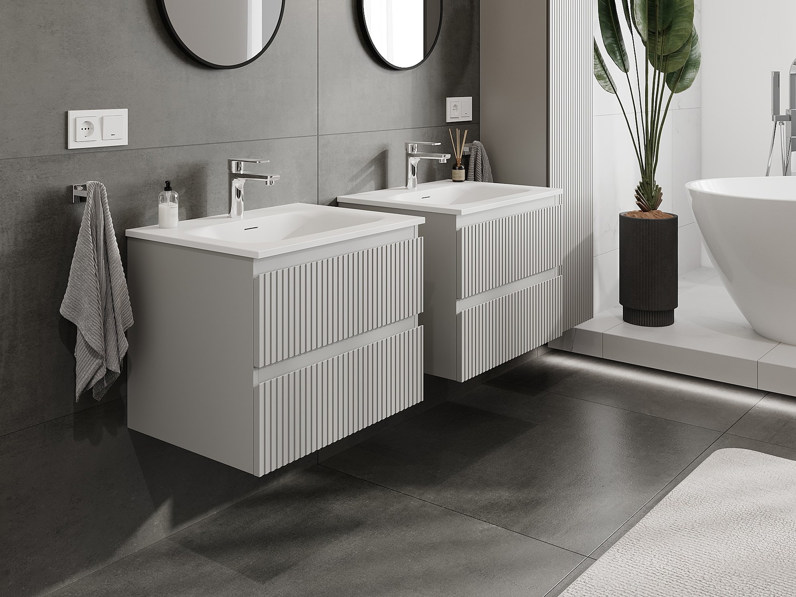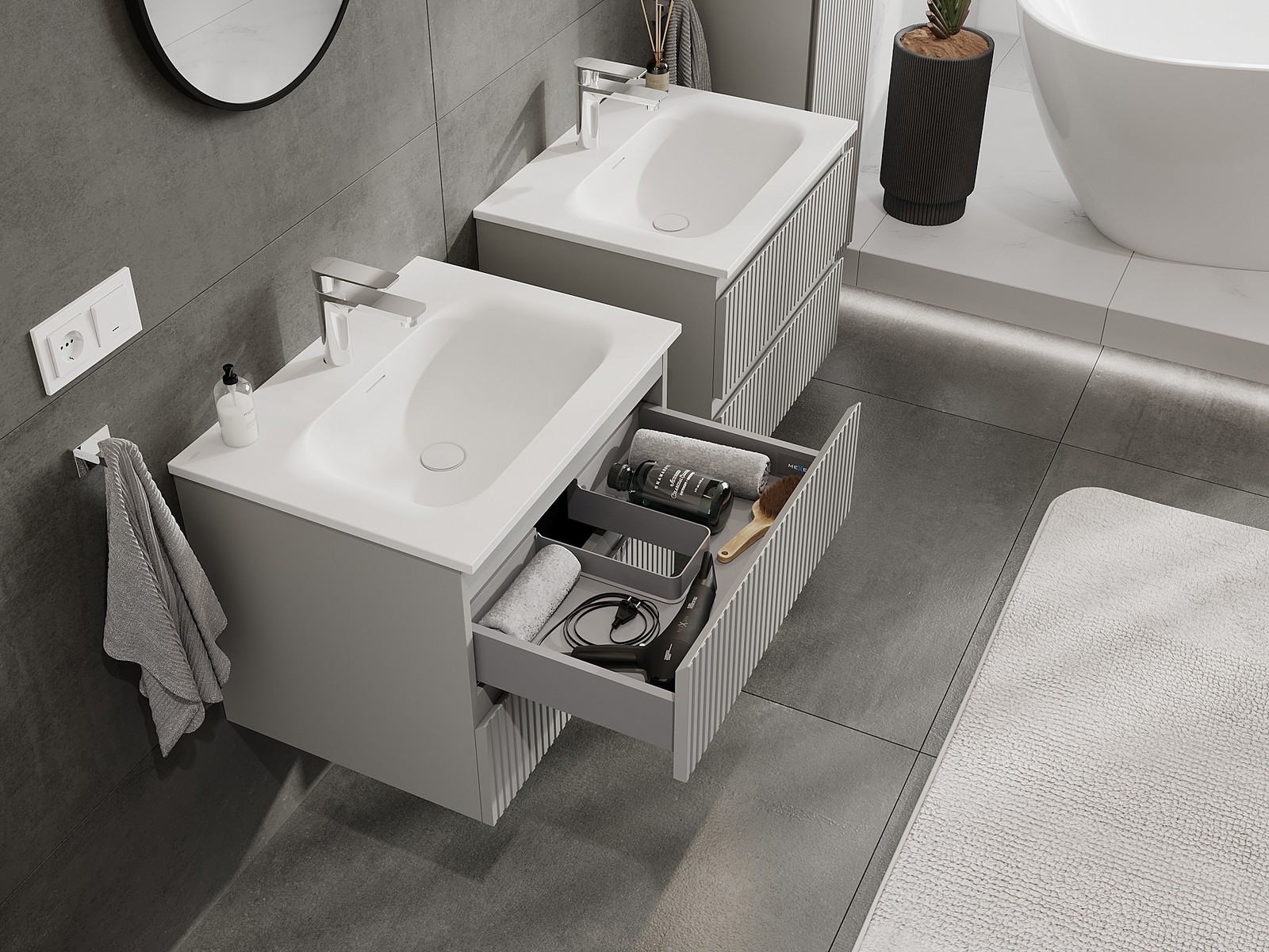 Os nossos móveis de casa de banho modulares podem ser combinados em várias configurações de cores, permitindo total personalização. Pode escolher tanto a aparência como as funções de cada elemento, o que permite ajustar os móveis às suas próprias preferências de estilo e uso.