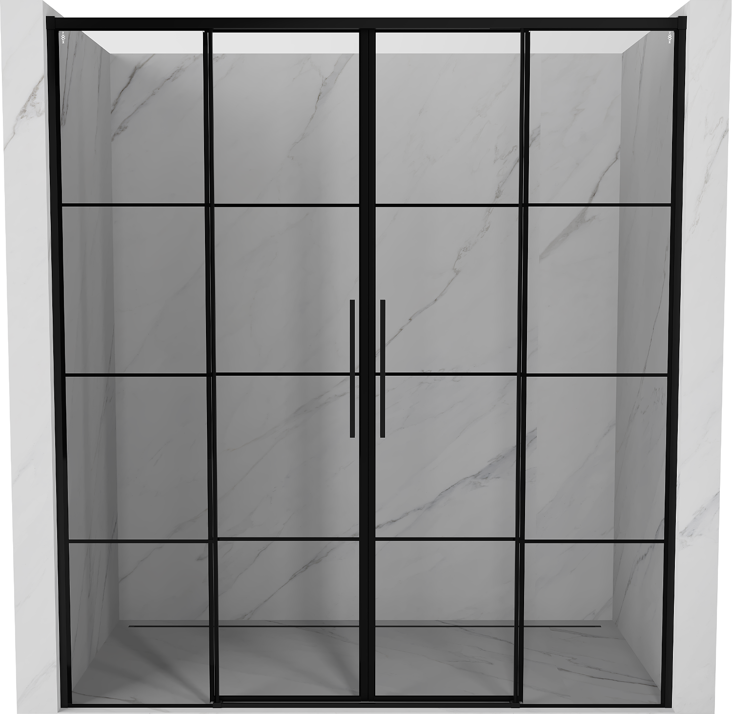 Mexen Rox portas de chuveiro deslizantes 190 cm, padrão xadrez preto, preto - 8C2-190-002-70-77