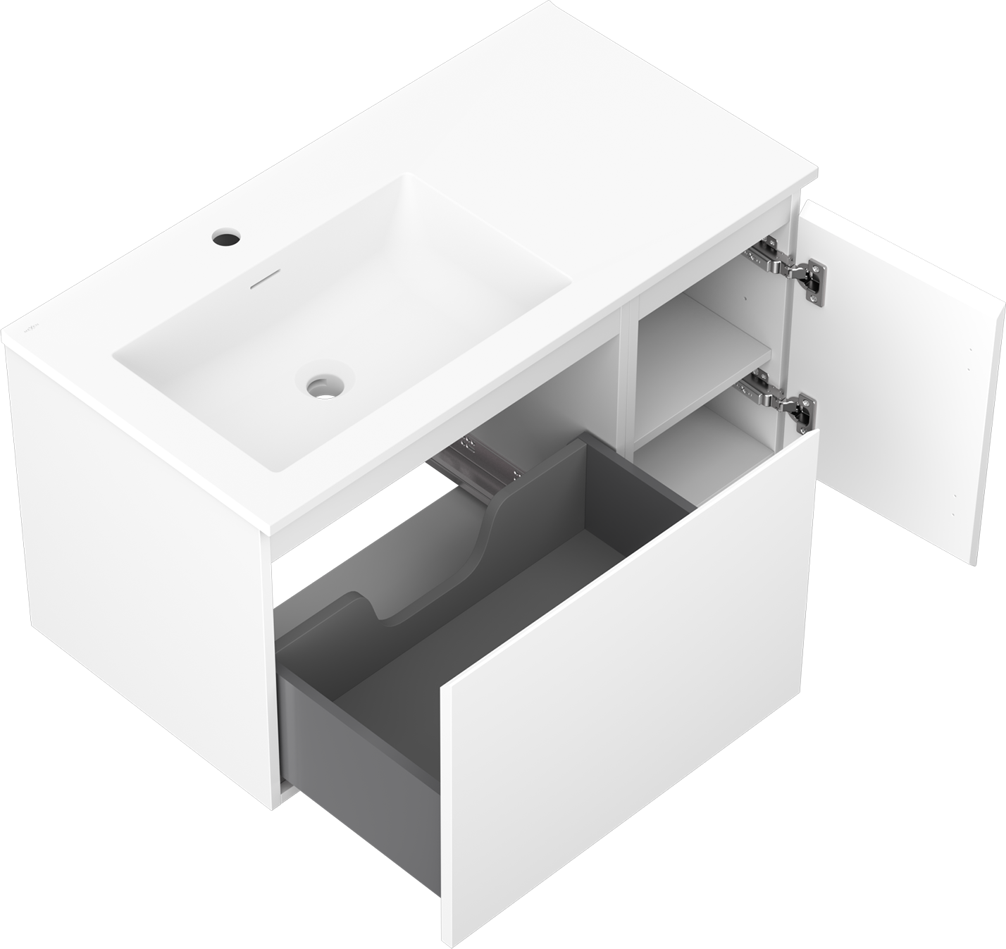 Mexen Orio armário de casa de banho 90 cm com lavatório Otis esquerdo, 1S, 1D, branco mate - 91A13-09047-3-BBFF01-W18L01