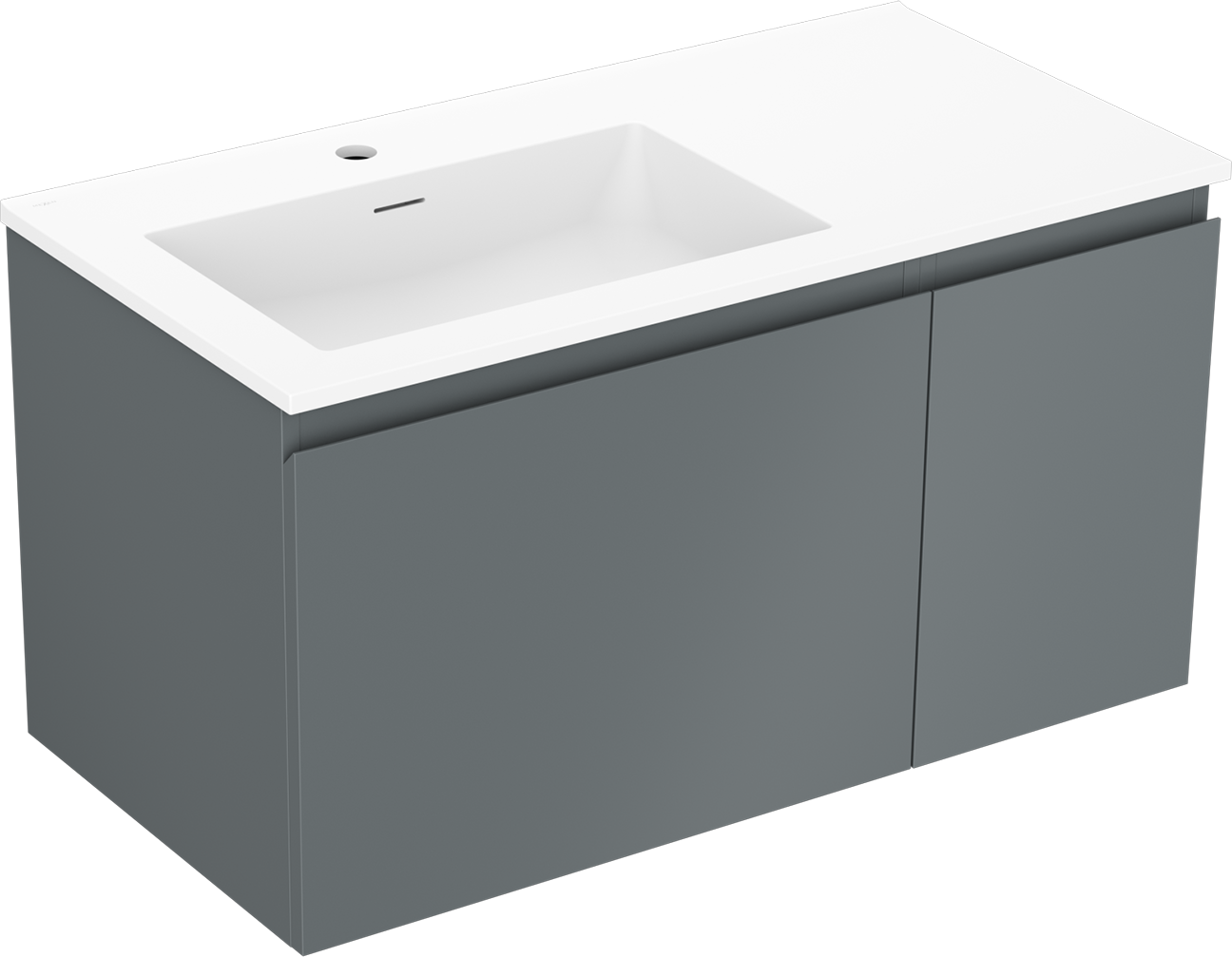 Mexen Orio armário de casa de banho 90 cm com lavatório Otis esquerdo, 1S, 1D, grafite mate/branco mate