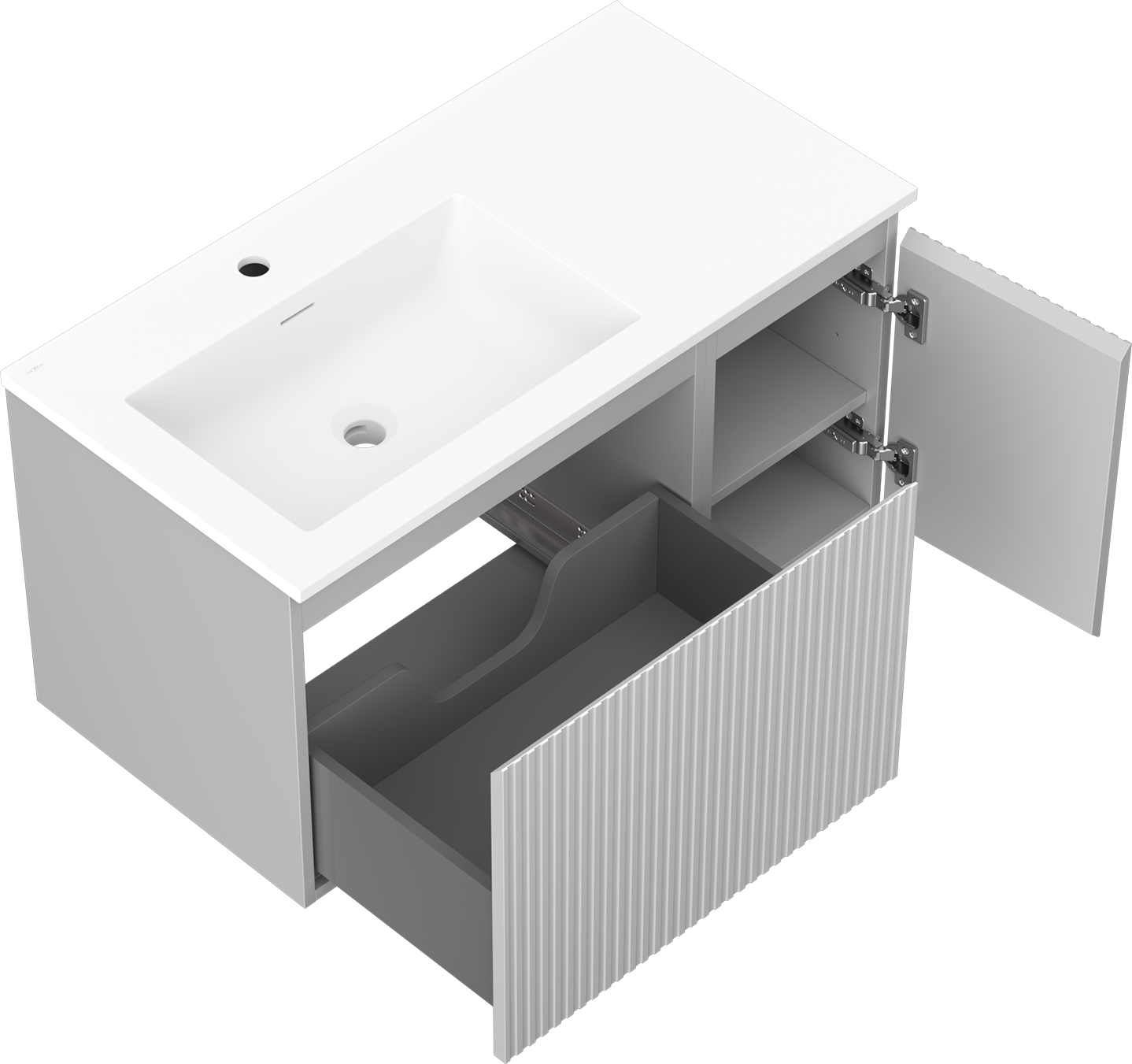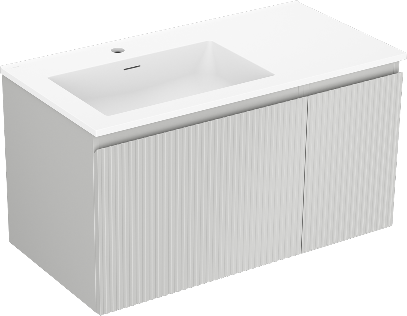 Mexen Rivel armário de casa de banho 90 cm com lavatório Otis esquerdo, 1G, 1P, ranhurado, cinzento mate/branco mate