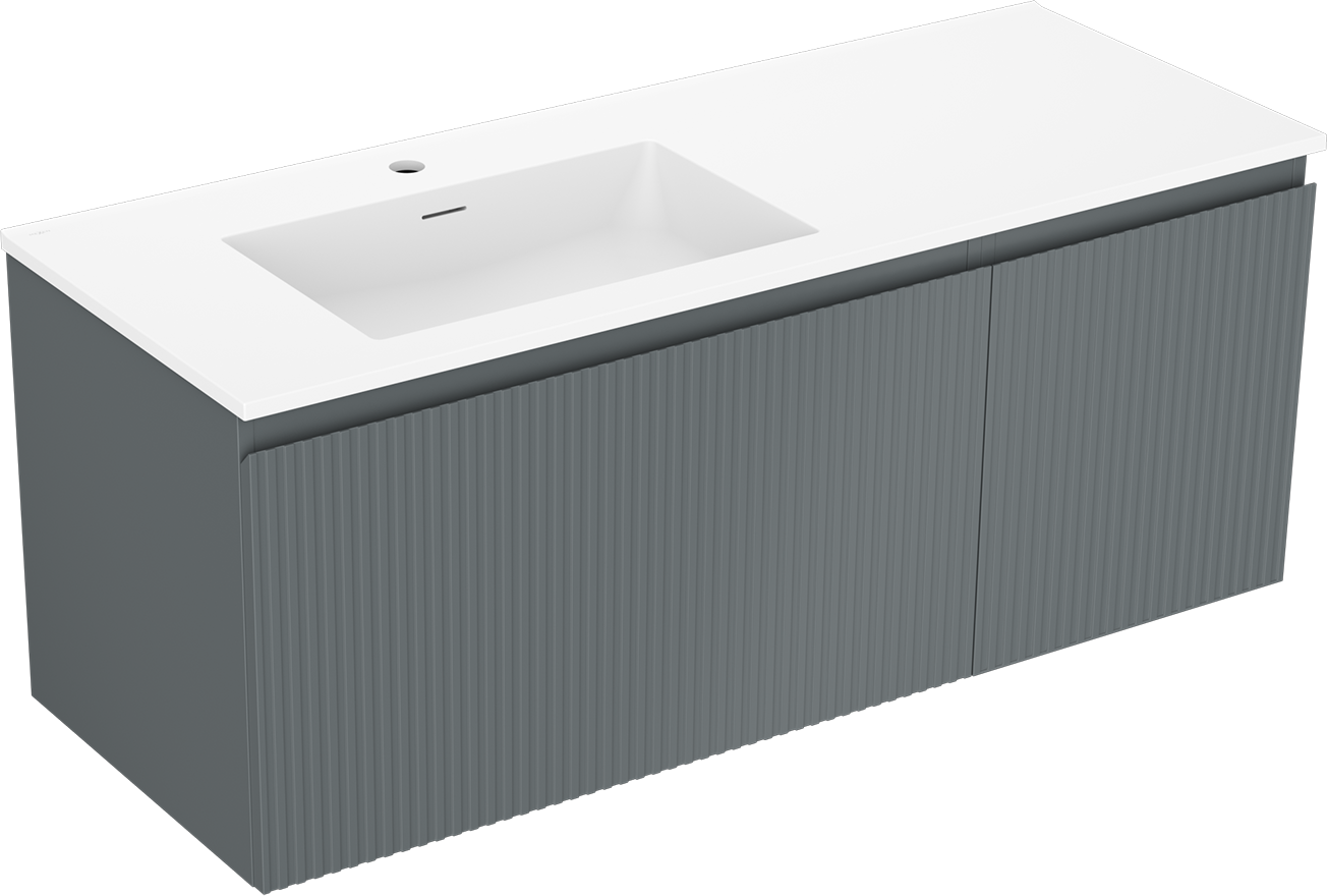 Mexen Rivel armário de casa de banho 120 cm com lavatório Otis esquerda, 1G, 1P, frisada, grafite mate/branco mate