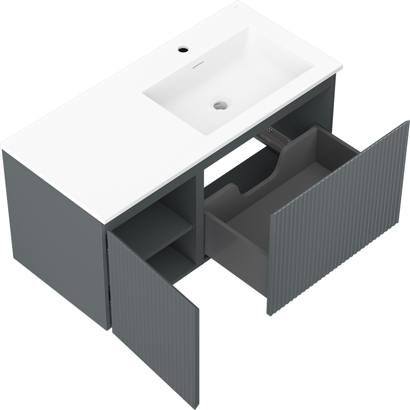 Mexen Rivel móvel de casa de banho de 100 cm com lavatório Otis direito, 1S, 1D, ranhurado, grafite/branco mate