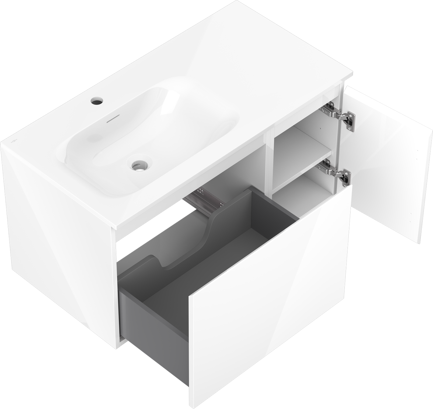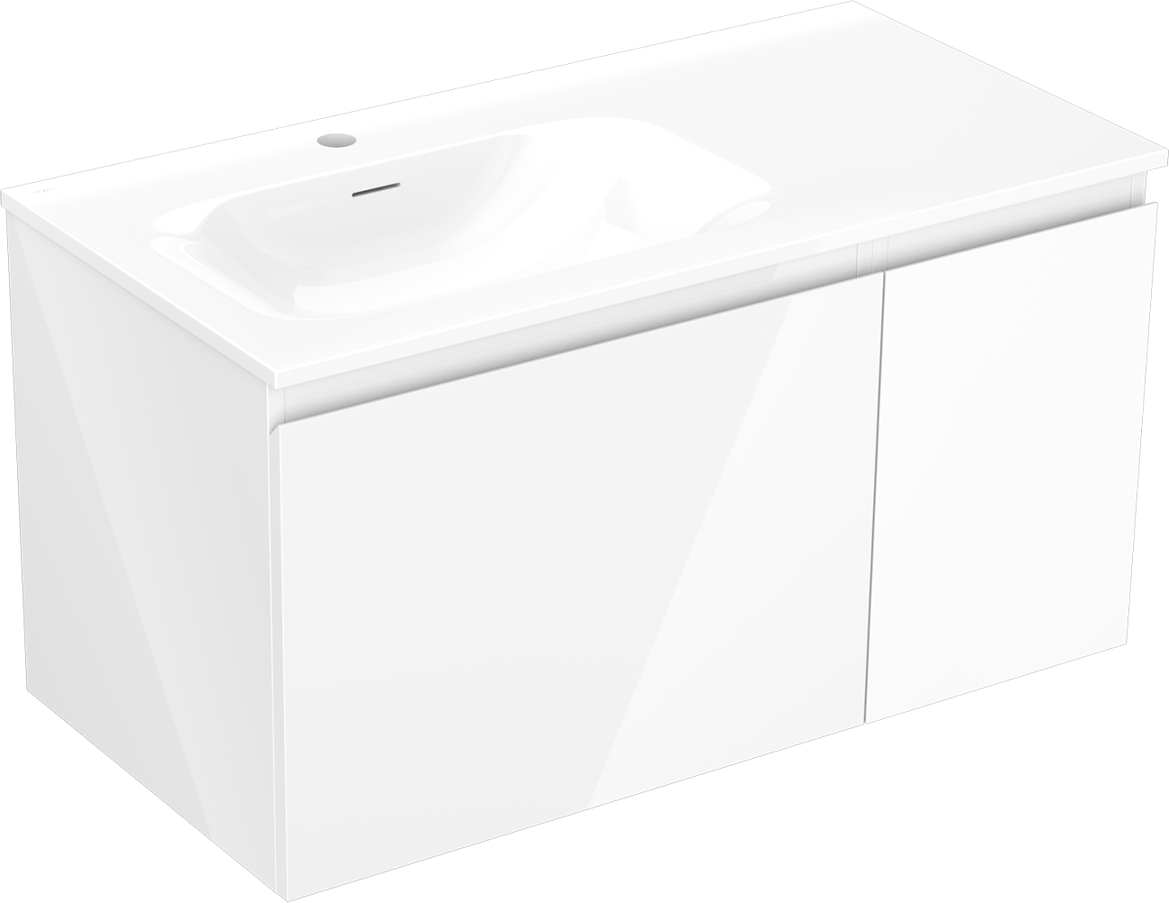 Mexen Orio armário de casa de banho de 90 cm com lavatório Vela esquerdo, 1S, 1D, branco brilho - 91A13-09047-3-BBFF00-W23L00