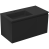 O recorte na gaveta é projetado de forma a acomodar o sifão, que é essencial em instalações de lavatórios. Graças a isso, o móvel pode ser montado de forma totalmente funcional, sem a necessidade de abdicar do espaço da gaveta em prol da instalação.