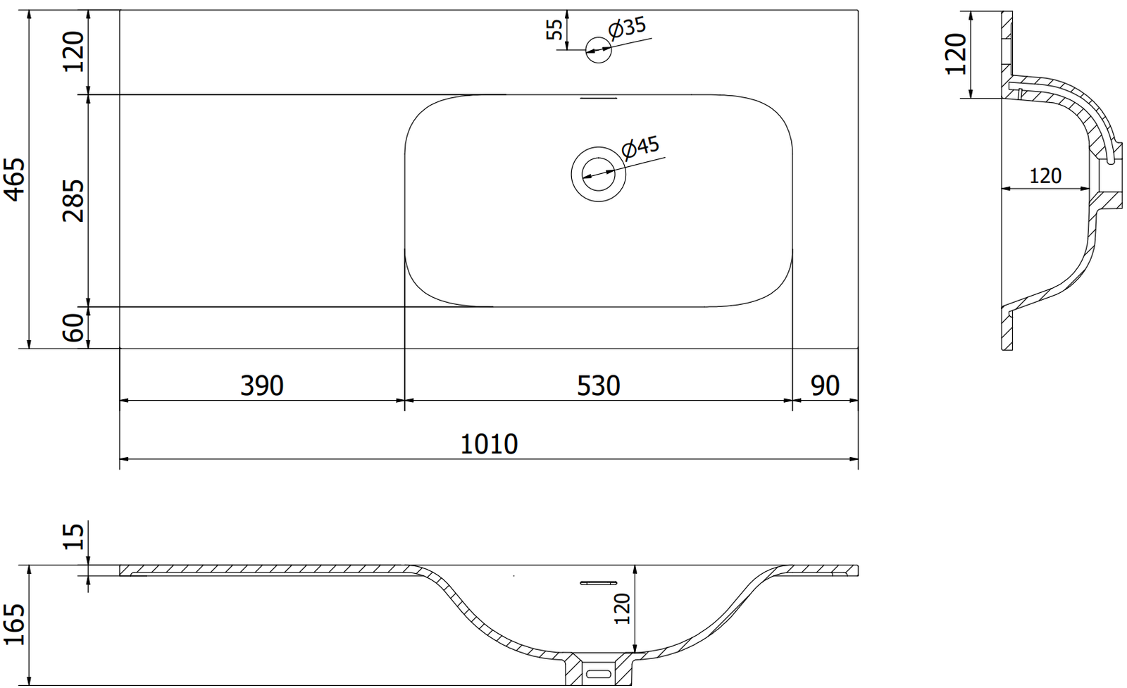 O lavatório possui uma abertura onde podemos instalar uma torneira. Isso permite economizar espaço valioso na casa de banho e realçar a sua estética. Esta solução também facilita a manutenção da limpeza ao redor do lavatório.
