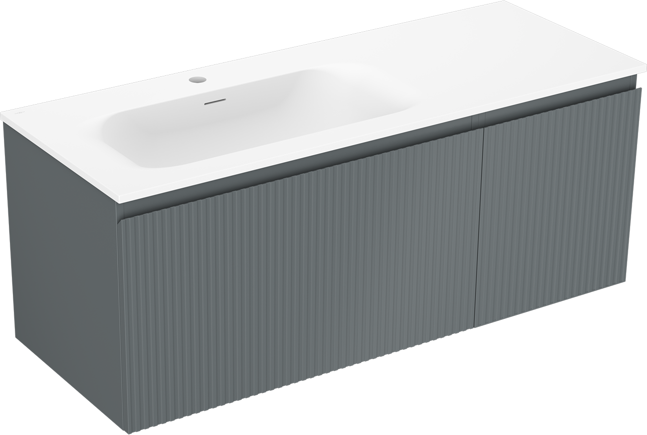 Mexen Rivel armário de casa de banho de 120 cm com lavatório Vela esquerdo, 1S, 1D, canelado, grafite mate/branco mate