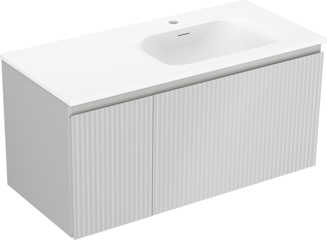 Mexen Rivel armário de casa de banho 100 cm com lavatório Vela à direita, 1S, 1D, canelado, cinza mate/branco mate