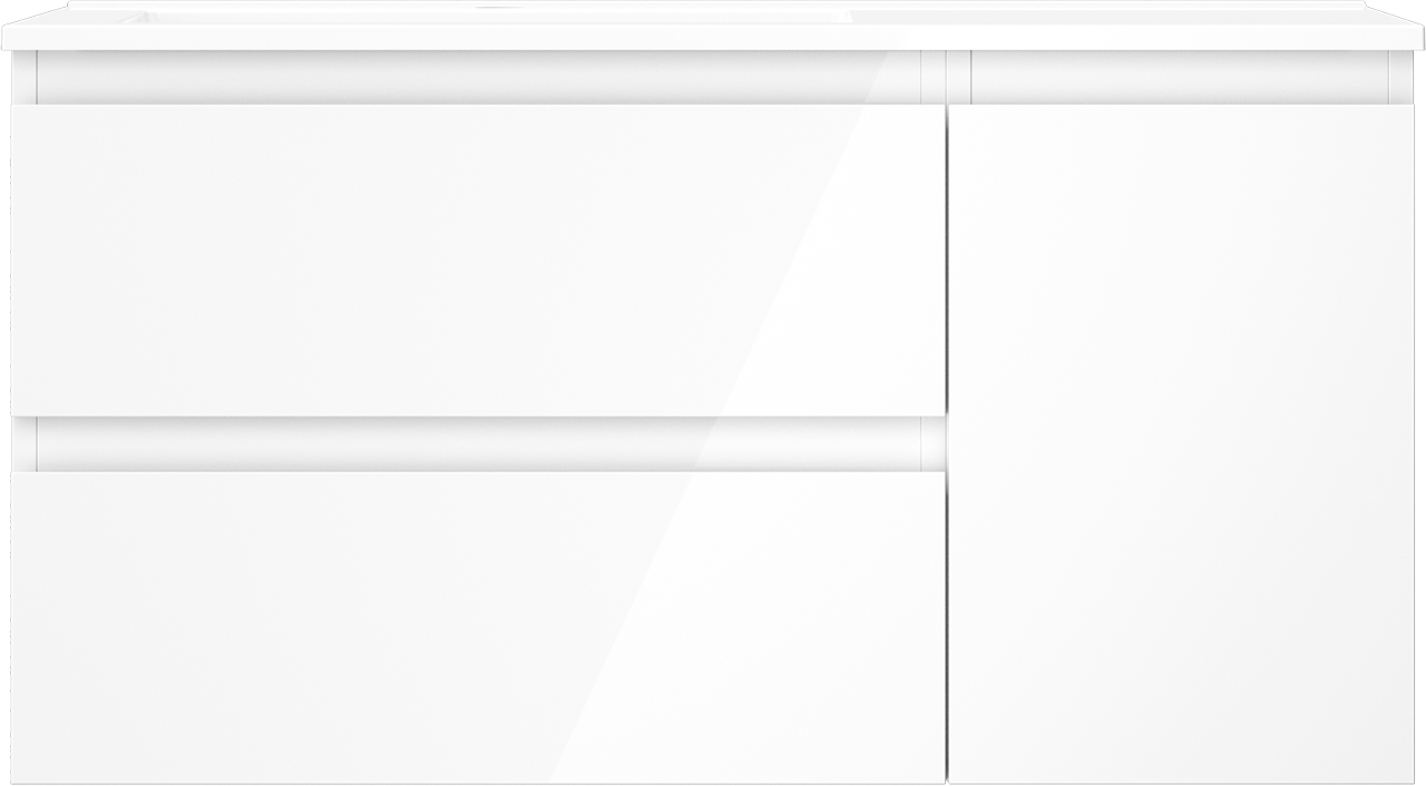 Mexen Orio armário de casa de banho 90 cm com lavatório Otis esquerdo, 2S, 1D, branco brilhante - 91A13-09047-3-BBFFF00-W18L00