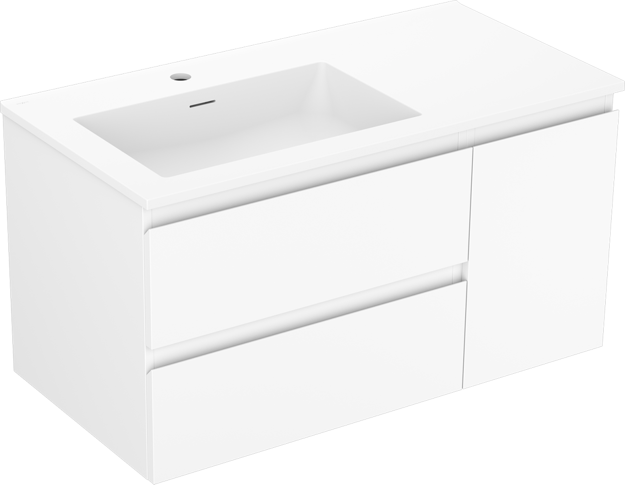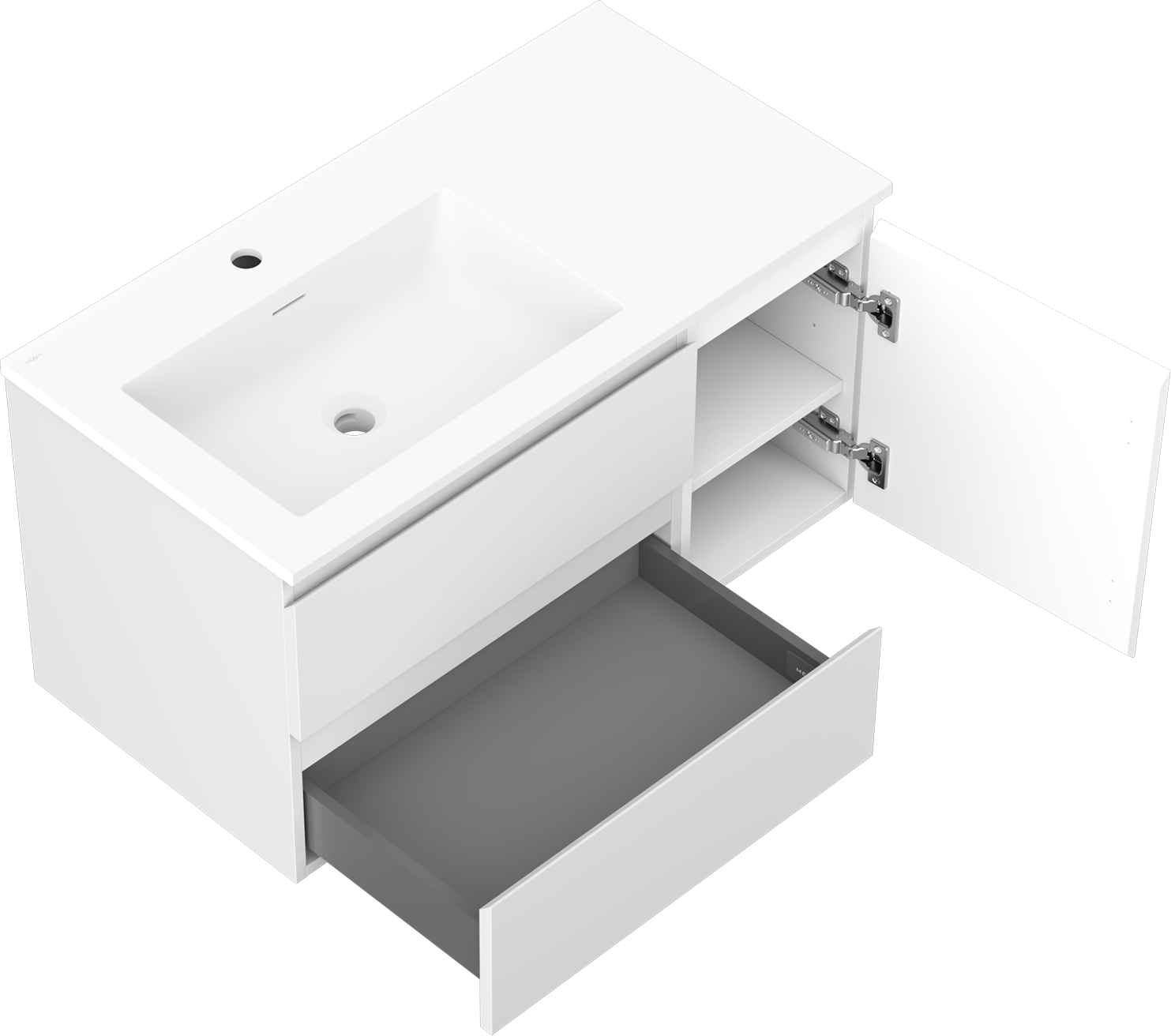Mexen Orio armário de casa de banho de 90 cm com lavatório Otis esquerdo, 2S, 1D, branco mate - 91A13-09047-3-BBFFF01-W18L01