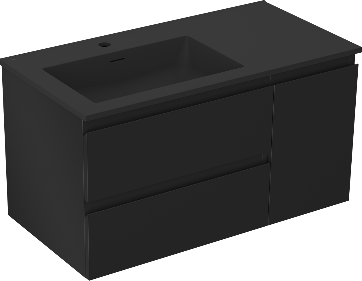 Mexen Orio armário de casa de banho 90 cm com lavatório Otis esquerdo, 2S, 1D, preto mate - 91A13-09047-3-BBFFF71-W18L71