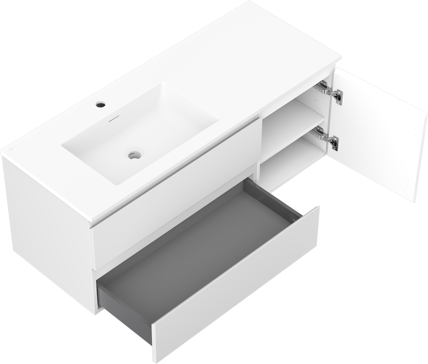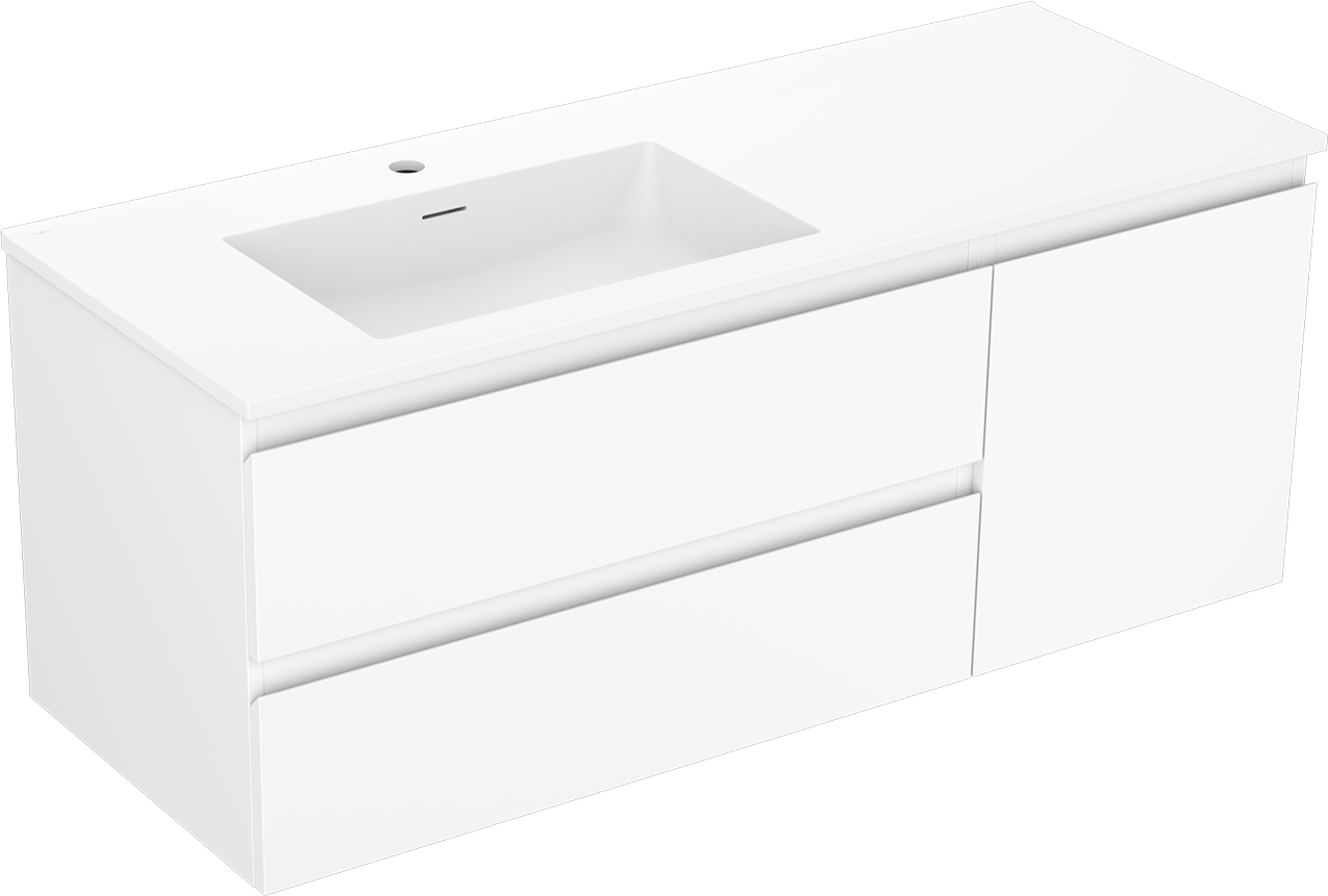 Mexen Orio armário de casa de banho 120 cm com lavatório Otis esquerdo, 2S, 1P, branco mate - 91A13-12047-3-BBFFF01-W18L01