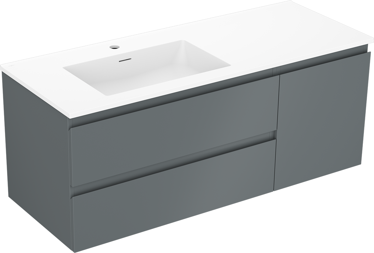Mexen Orio armário de casa de banho 120 cm com lavatório Otis esquerdo, 2S, 1D, grafite mate/branco mate