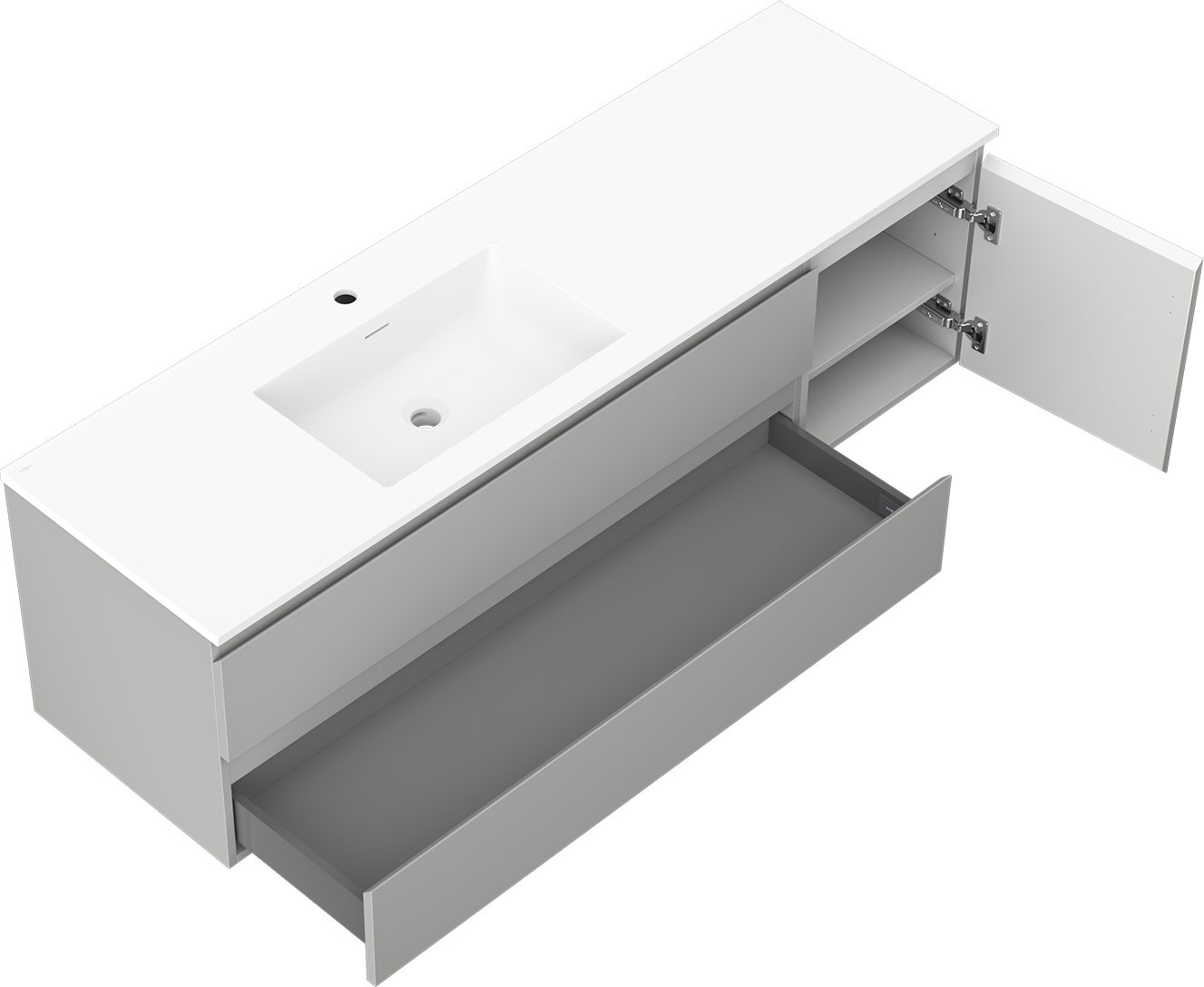 Mexen Orio móvel de casa de banho 160 cm com lavatório Otis esquerdo, 2S, 1D, cinza mate/branco mate