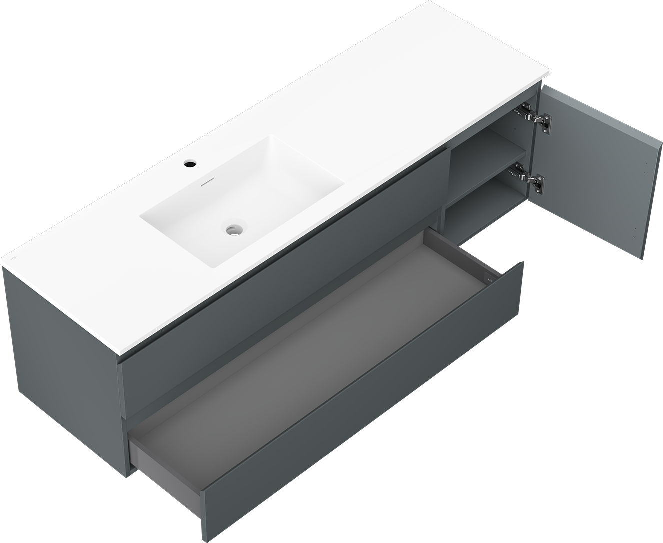 Mexen Orio armário de casa de banho 160 cm com lavatório Otis esquerdo, 2S, 1D, grafite mate/branco mate