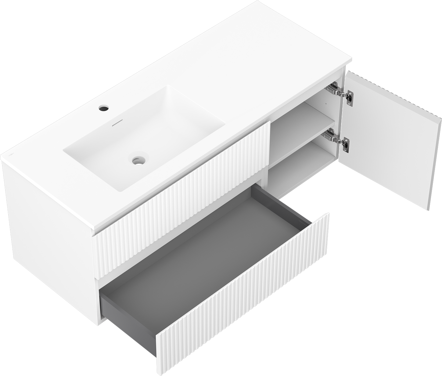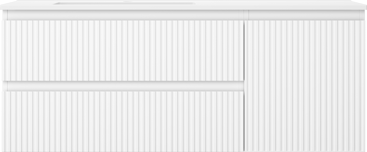 Mexen Rivel armário de casa de banho 120 cm com lavatório Otis esquerdo, 2S, 1D, frisado, branco mate
