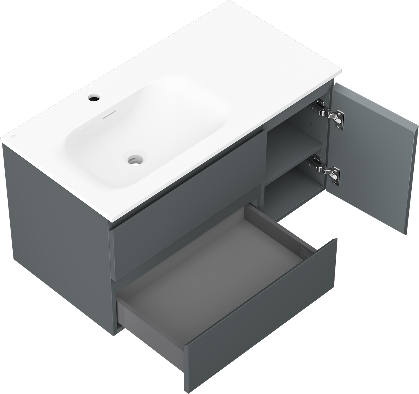Mexen Orio armário de casa de banho 90 cm com lavatório Vela esquerdo, 2S, 1D, grafite mate/branco mate