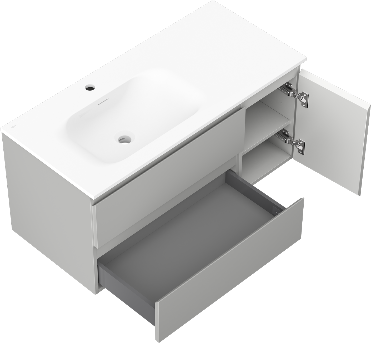 Mexen Orio armário de casa de banho 100 cm com lavatório Vela esquerdo, 2S, 1D, cinza mate/branco mate