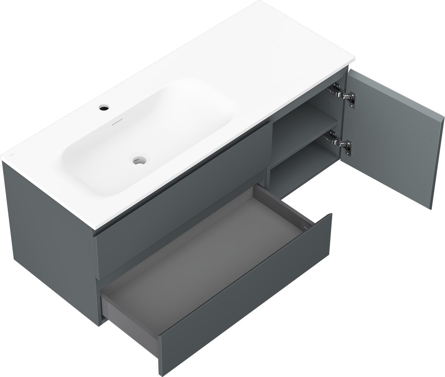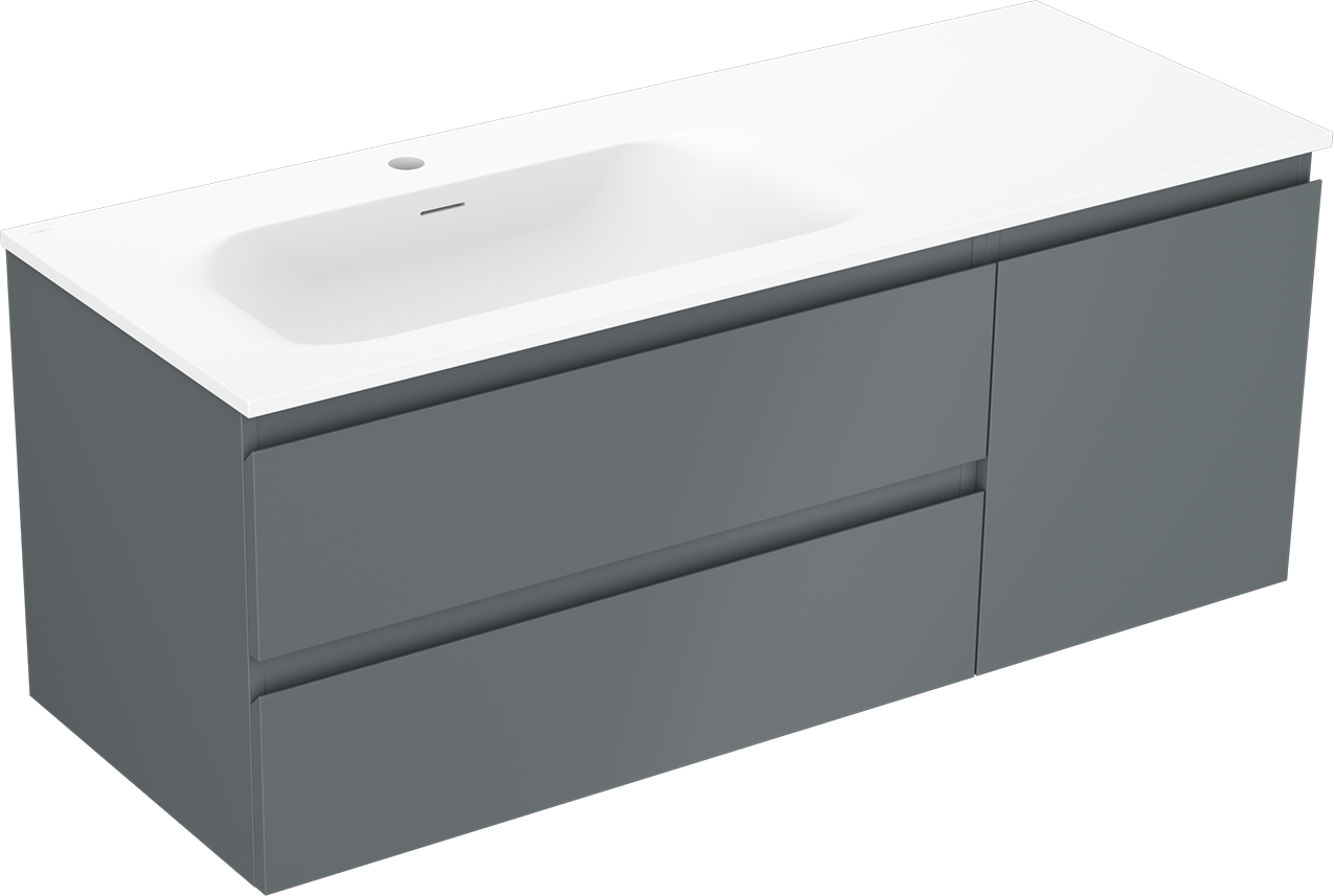 Mexen Orio armário de casa de banho 120 cm com lavatório Vela esquerdo, 2S, 1D, grafite mate/branco mate