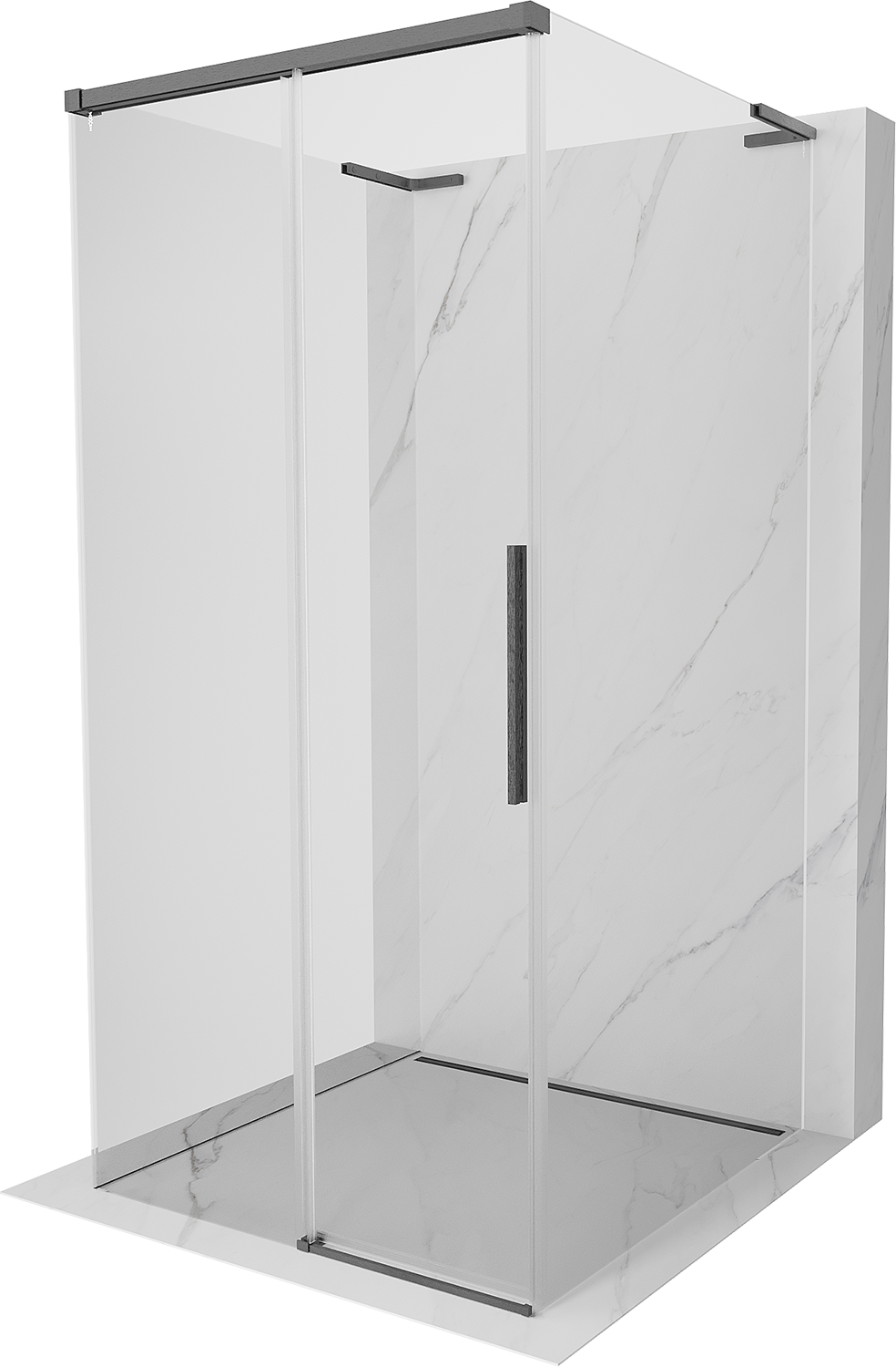 Mexen Rox-3S L cabine de duche de 3 lados com portas de correr 100 x 100 cm, transparente, cinza metalizado escovado