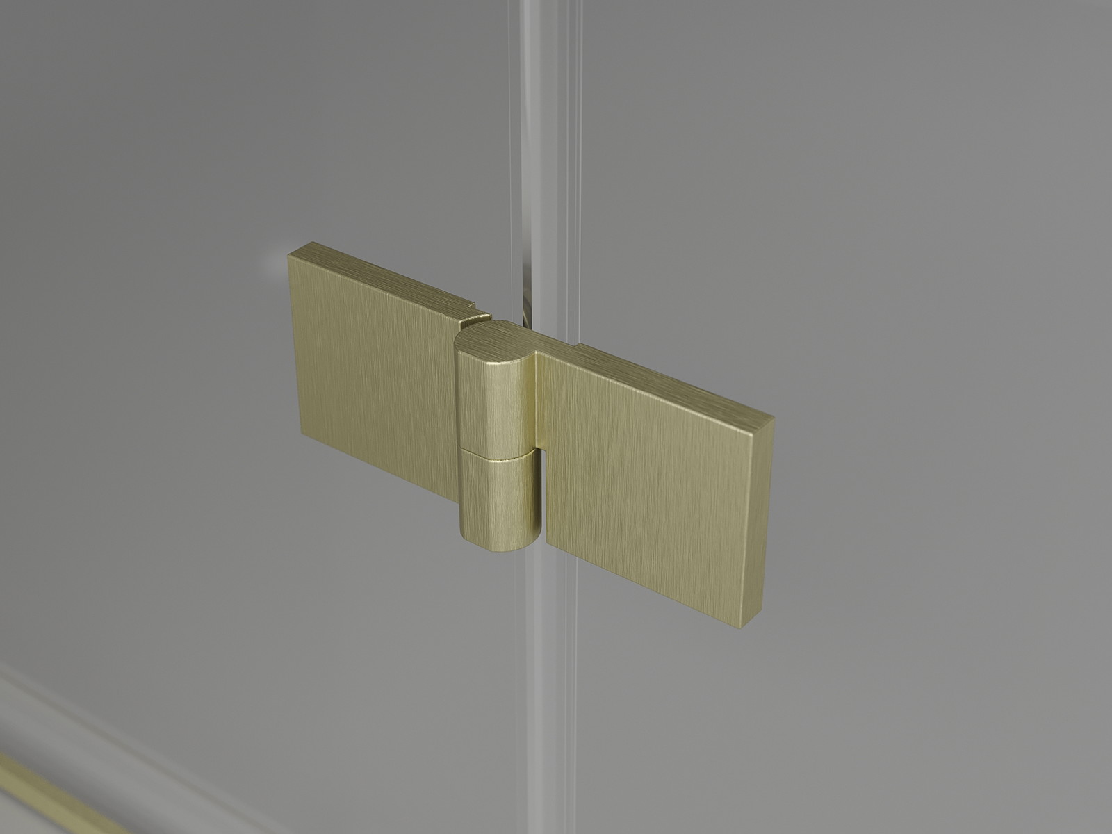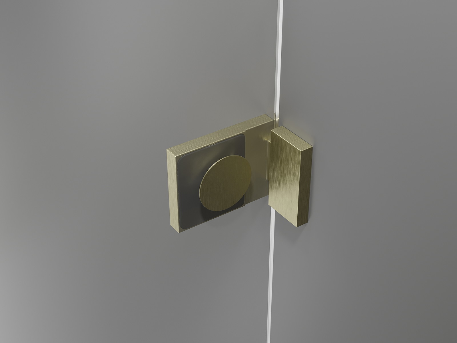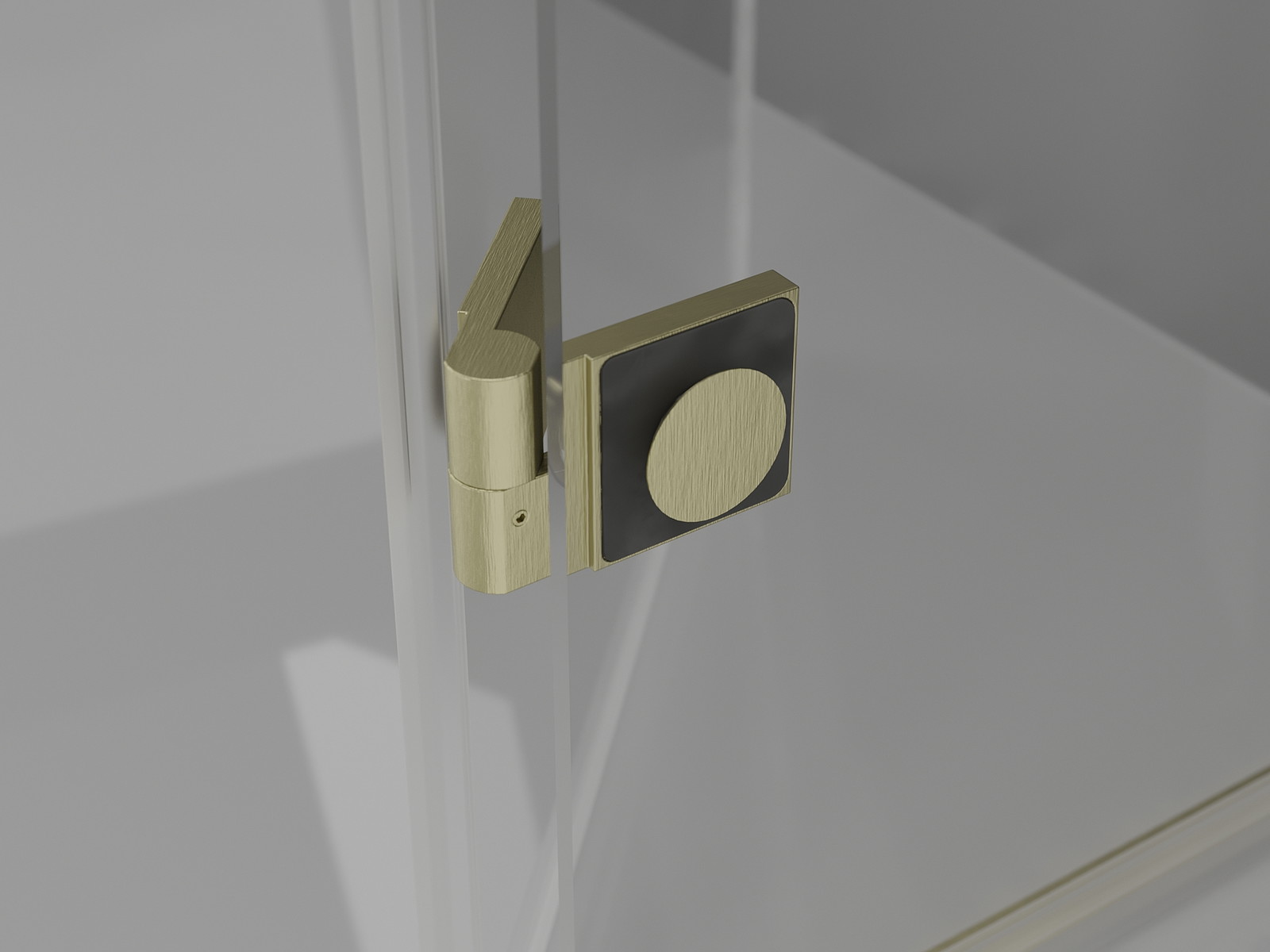Fechos e dobradiças em latão alinhados com o painel de vidro