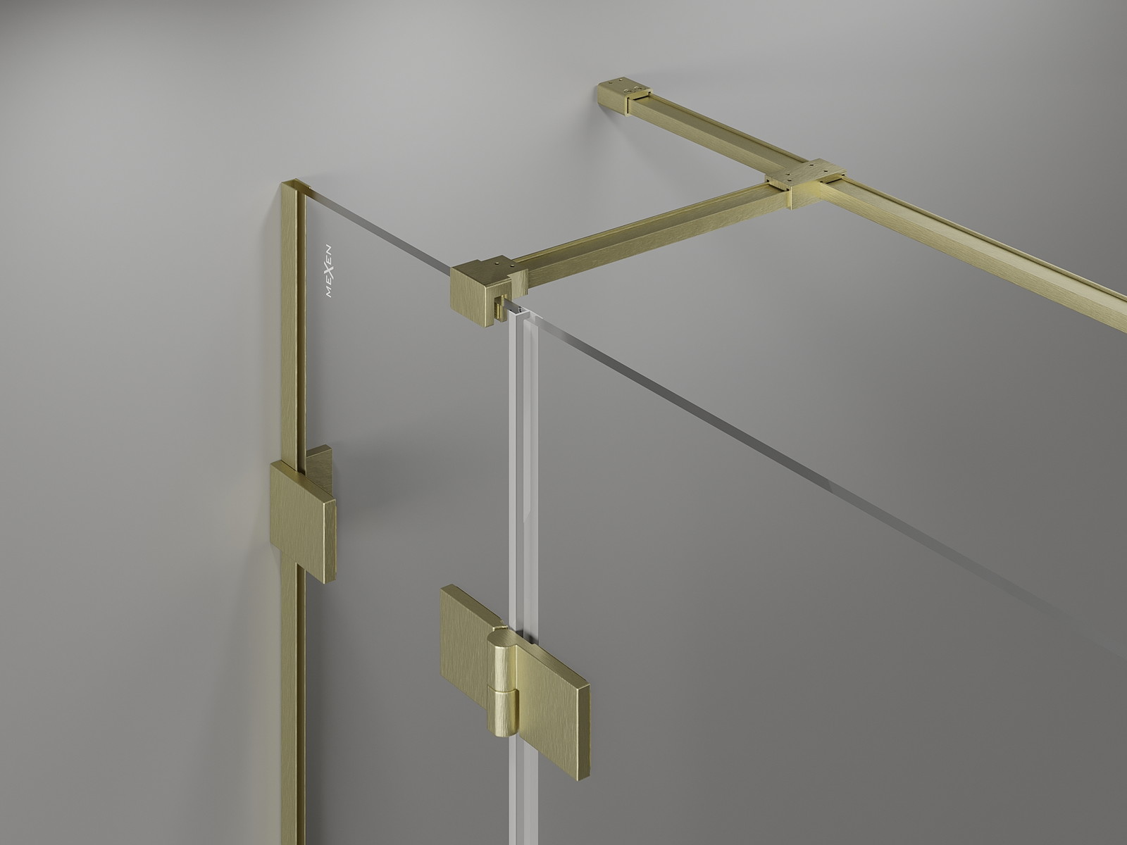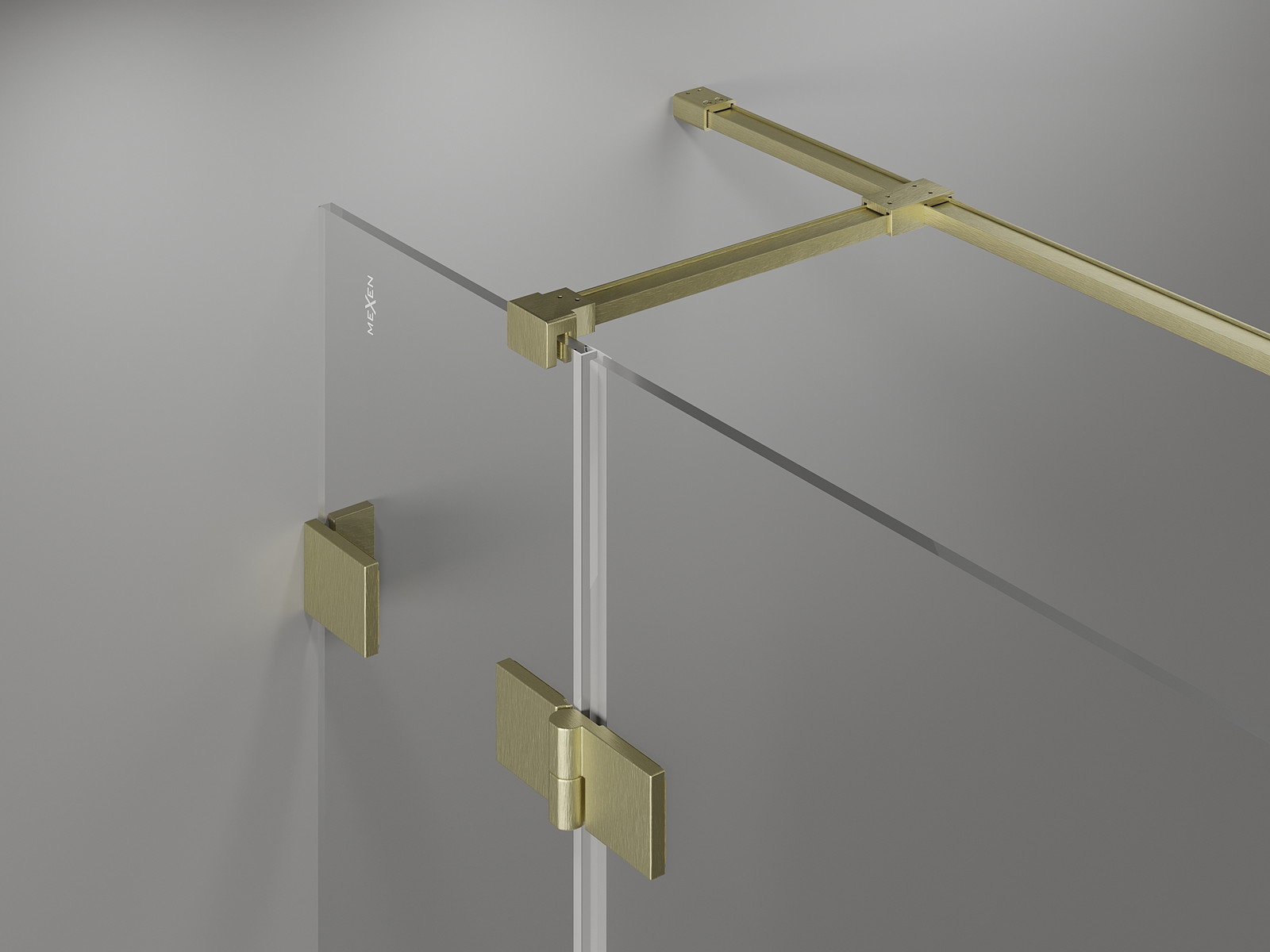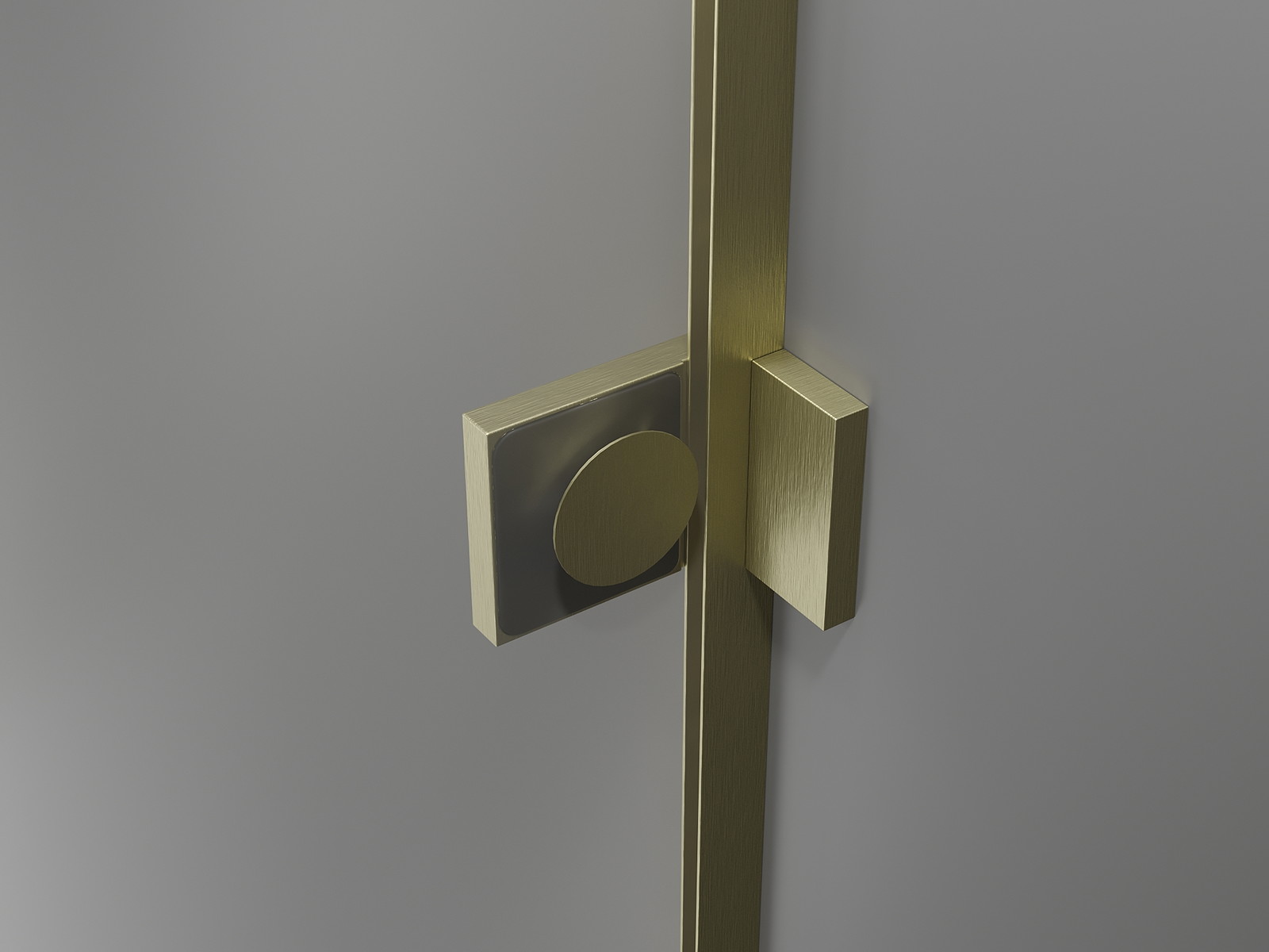 Fechos e dobradiças em latão alinhados com o painel de vidro