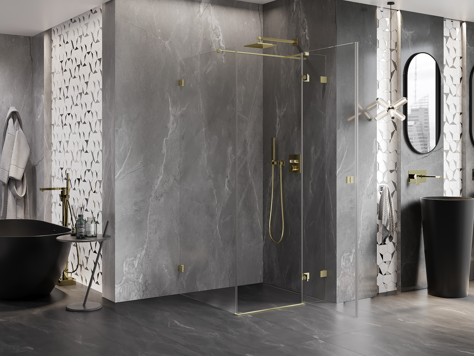 A pega prática e confortável foi feita de metal durável e resistente. A forma moderna combinada com o acabamento ajustado à cor dos perfis confere a todo o conjunto uma aparência moderna e estilosa, realçando a estética de qualquer casa de banho.
