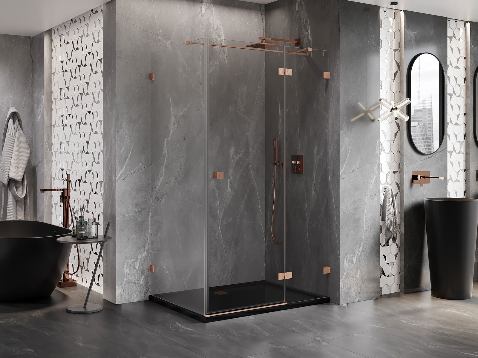 Mexen Lunar T cabine de duche pivotante direita 90 x 120 cm, transparente, cobre escovado - 834T-090-120-65-00-P