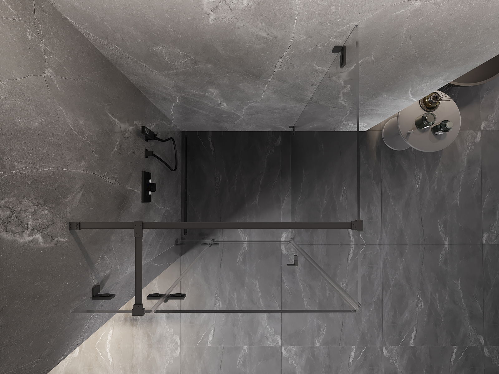 A pega prática e confortável foi feita de metal durável e resistente. A forma moderna combinada com o acabamento ajustado à cor dos perfis confere a todo o conjunto uma aparência moderna e estilosa, realçando a estética de qualquer casa de banho.