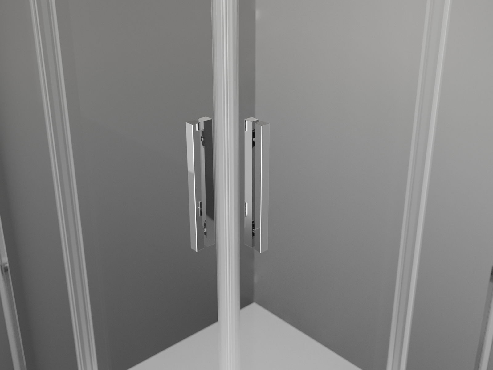 As portas de correr movem-se em guias especiais e não requerem espaço adicional para serem abertas, por isso são ideais para casas de banho menores. Graças aos rolos duplos com corpo de metal, o seu movimento é suave.