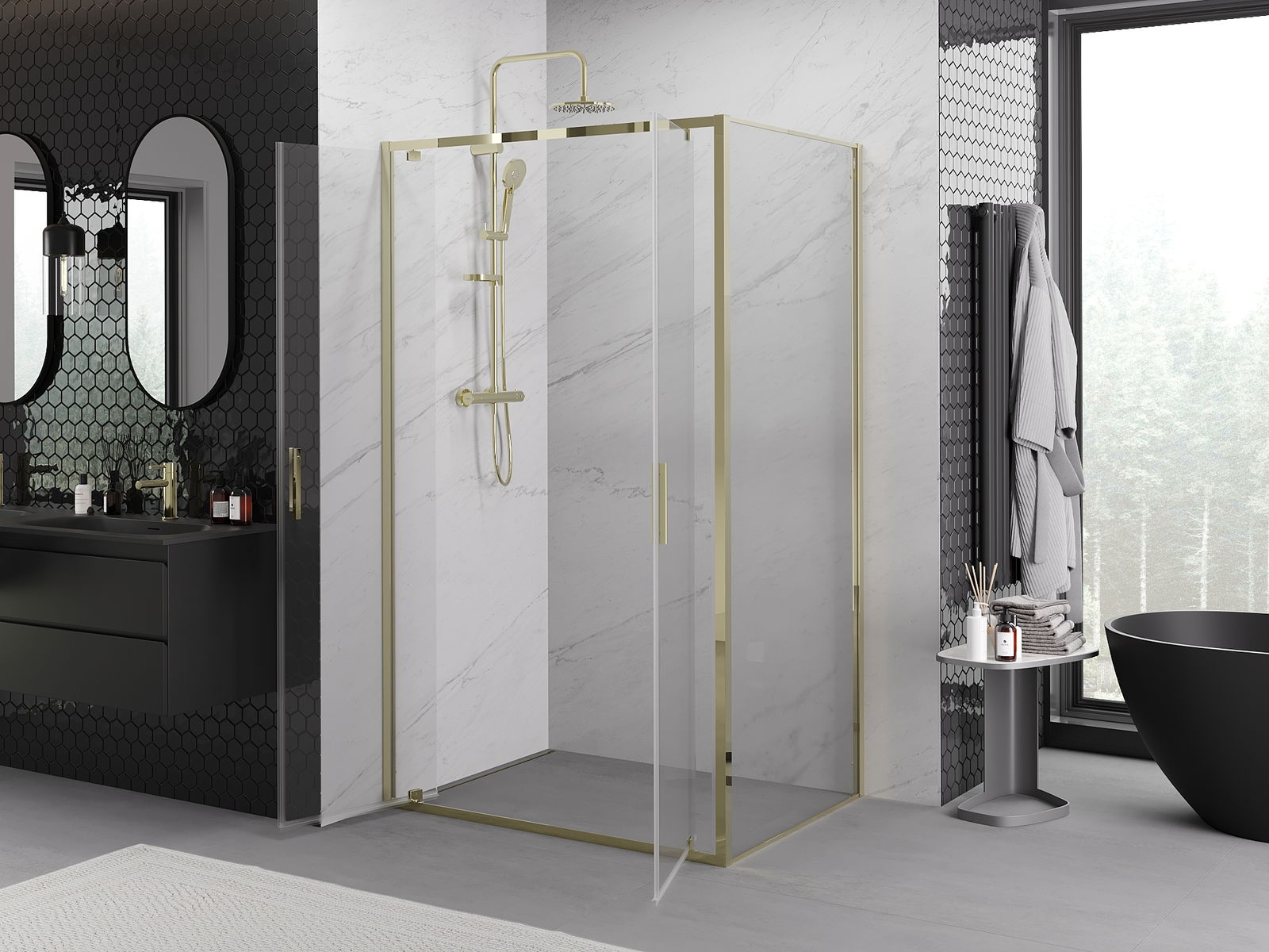 Mexen Exo cabine de duche com porta de abrir 90 x 110 cm, transparente, dourada - 8182-090-110-50-00