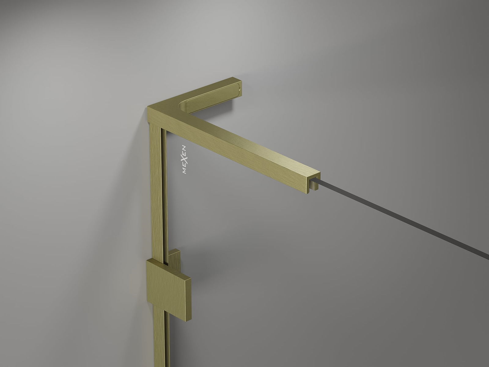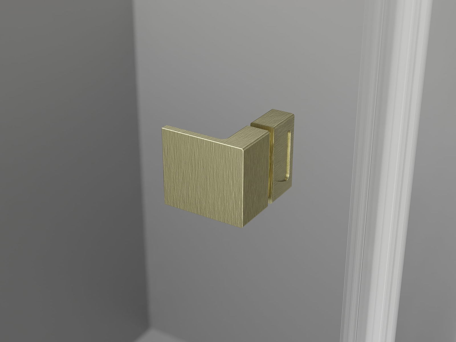Grampos e dobradiças de latão alinhados com a face de vidro