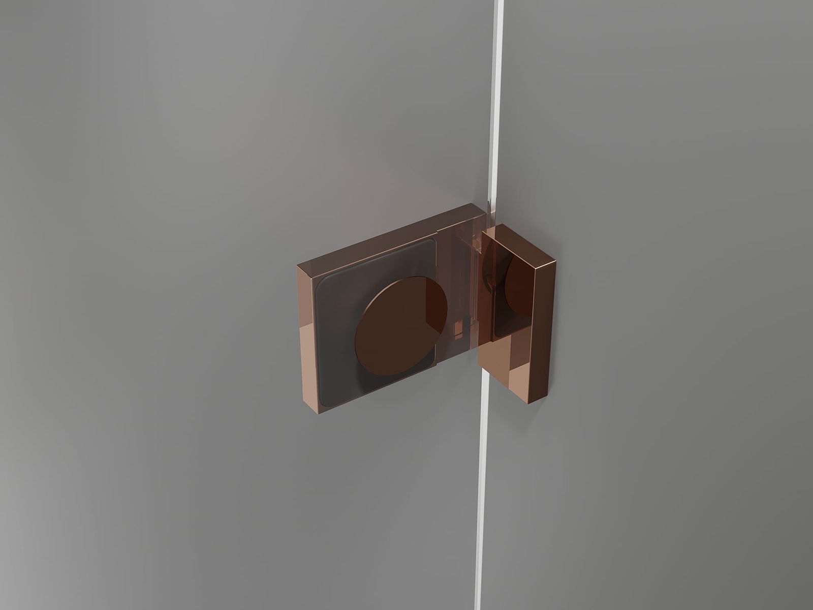 Fechaduras e dobradiças de latão embutidas na superfície do vidro