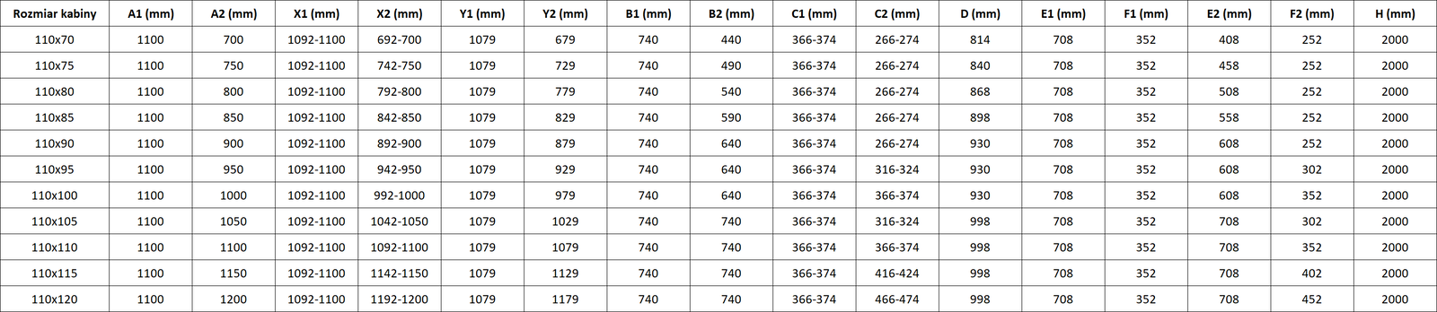 Tamanho: 110x90 cm (porta direita 110 cm, porta esquerda 90 cm)