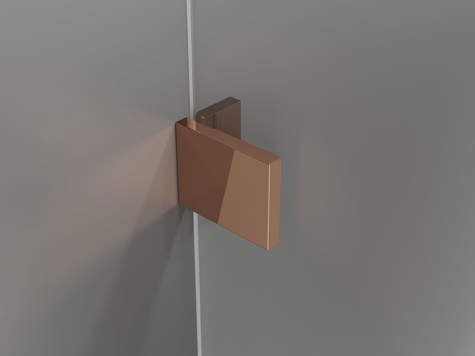 Braçadeiras e dobradiças de latão alinhadas com o painel de vidro
