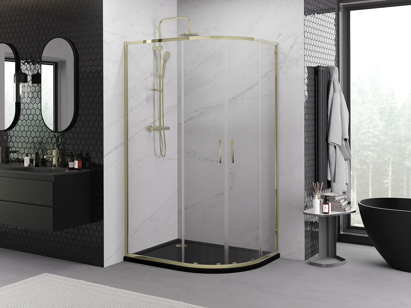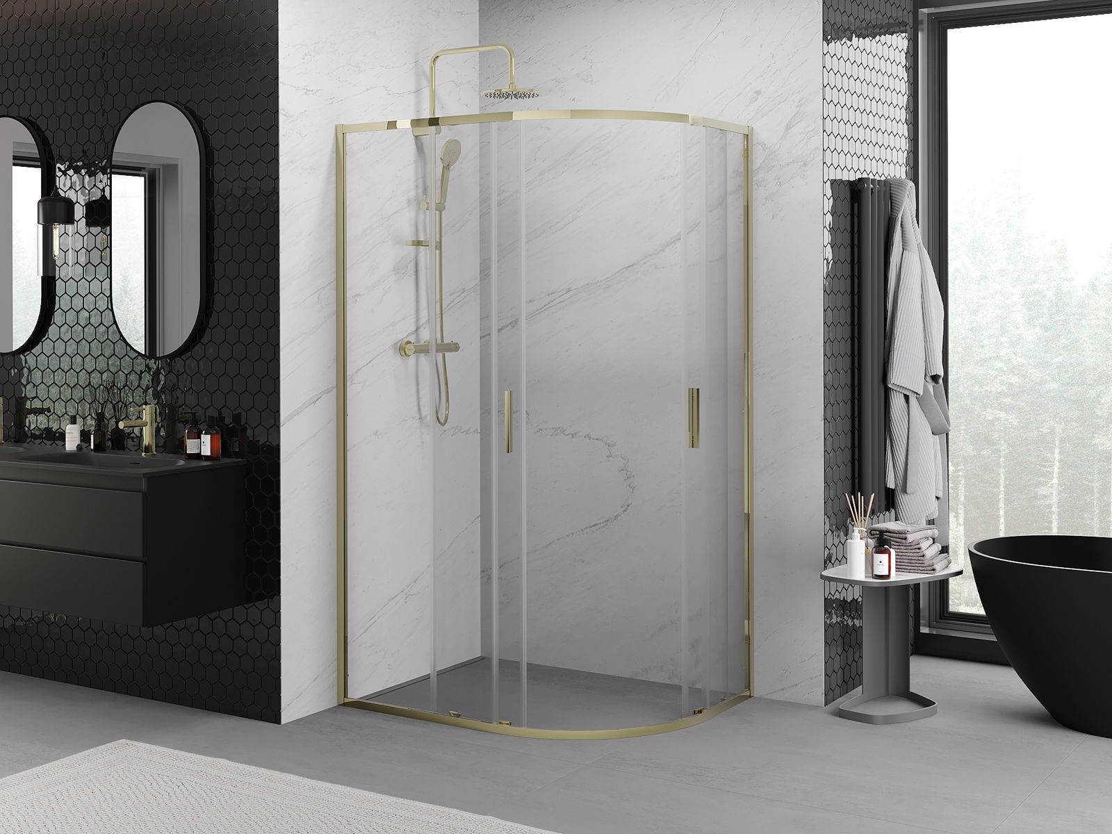 Mexen Exo cabine de duche semicircular deslizante 120 x 80 cm, transparente, dourada - 8132-120-080-50-00
