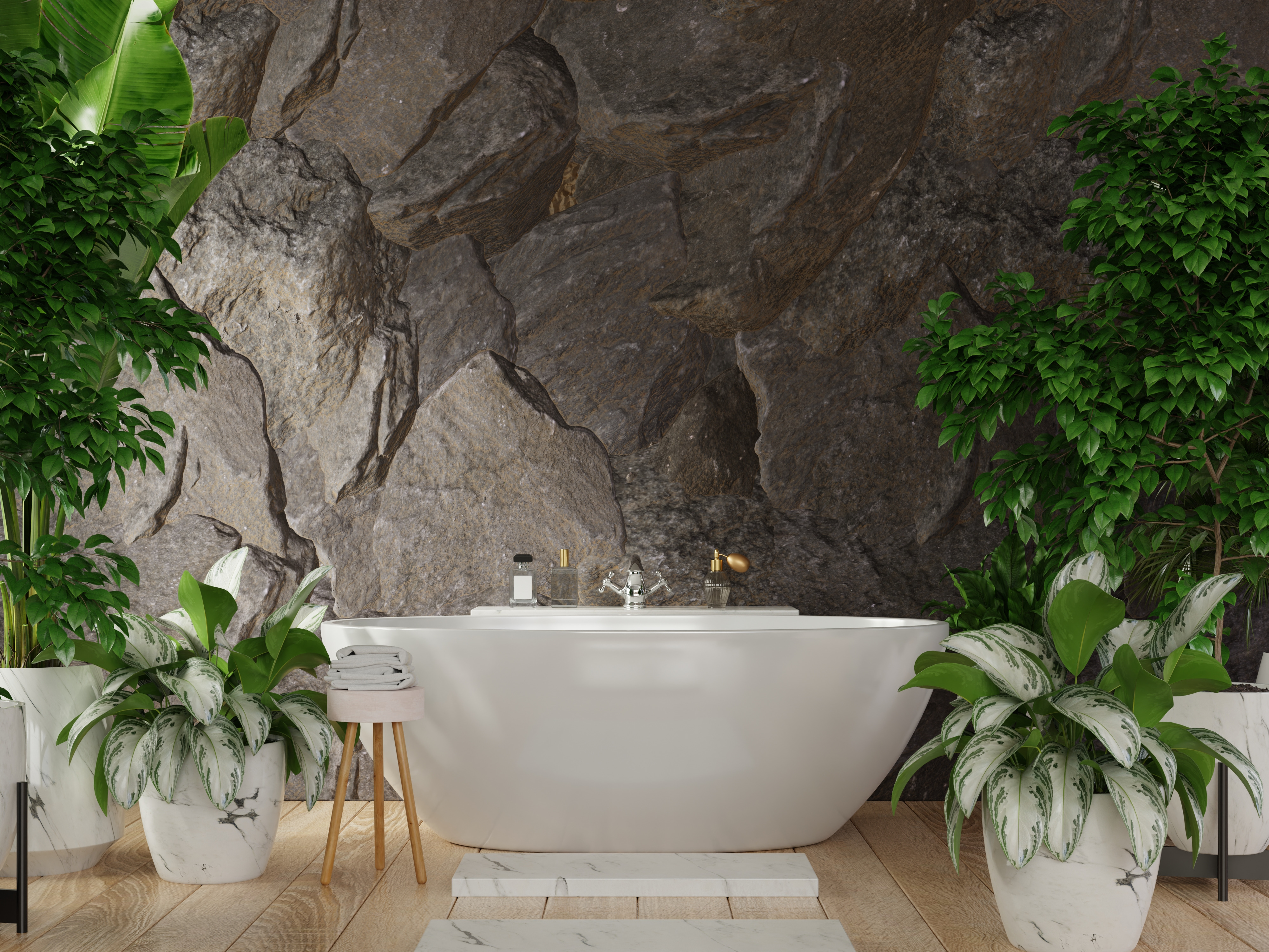 E se prefere decorações mais modernas? Soluções modernas são cada vez mais utilizadas em casas de banho glamour. Pode optar por uma banheira independente de forma assimétrica e arredondada, que em nenhum aspecto diminui a elegância. Esta forma acalma um interior saturado com elementos opulentos. Uma torneira de banheira de pé pode quebrar a simplicidade de uma banheira independente moderna.