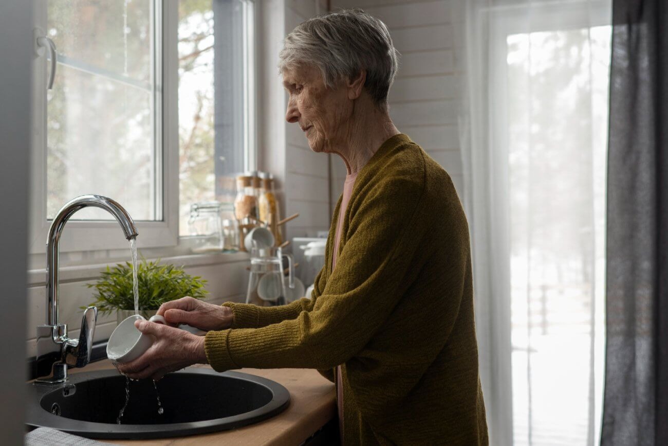 - Risco de salpicar vidros e peitoril - ao lavar louça, especialmente aquelas maiores, há o risco de salpicar a janela, o peitoril e as molduras com água. A humidade pode causar danos mecânicos, como deformação do peitoril ou corrosão das molduras - especialmente se forem de madeira. Por isso, é importante proteger adequadamente esses elementos, por exemplo, usando materiais resistentes à humidade ou conservando-os regularmente.