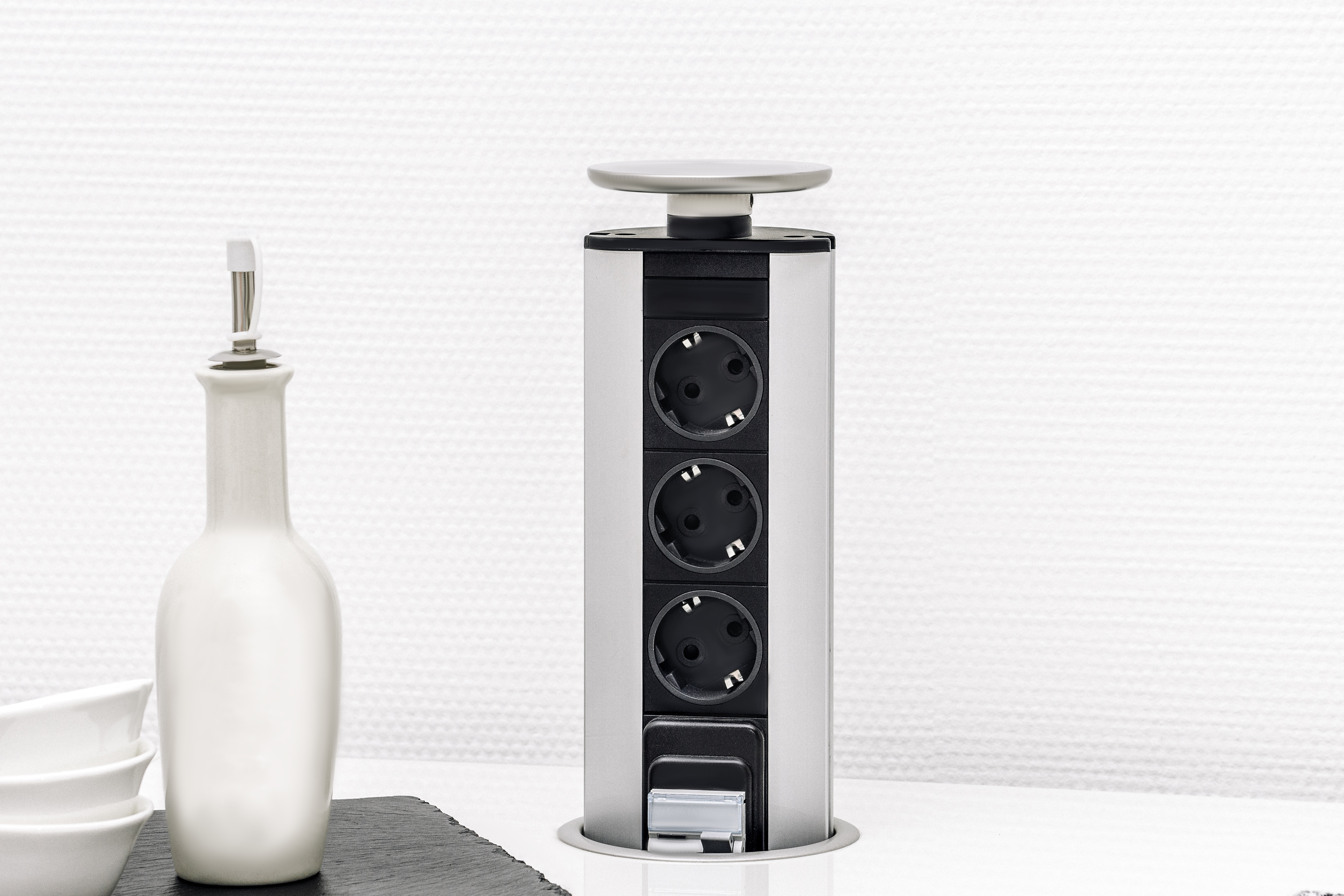 Atualmente, surgem métodos completamente novos que permitem colocar uma tomada elétrica de forma a que seja o menos visível possível. Além disso, em uma tomada podem ser ligadas várias outras, que serão, por exemplo, embutidas no tampo e somente retiradas quando necessário. As tomadas elétricas embutidas no espaço de trabalho praticamente não ocupam espaço e, adicionalmente, não estão sujeitas ao risco de inundação ou sujidade durante a preparação de refeições.