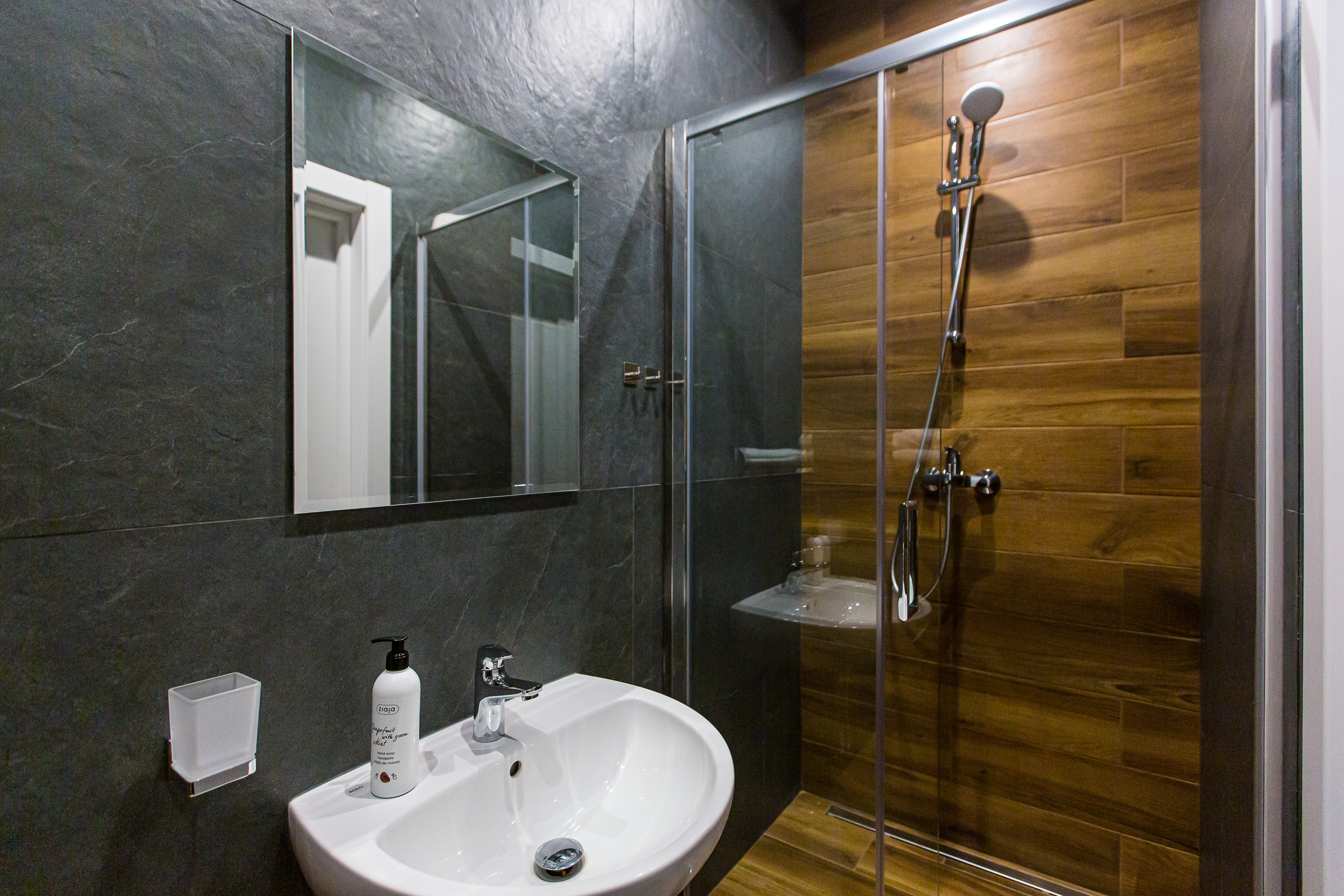 - locais onde os perfis do duche estão fixados à parede.