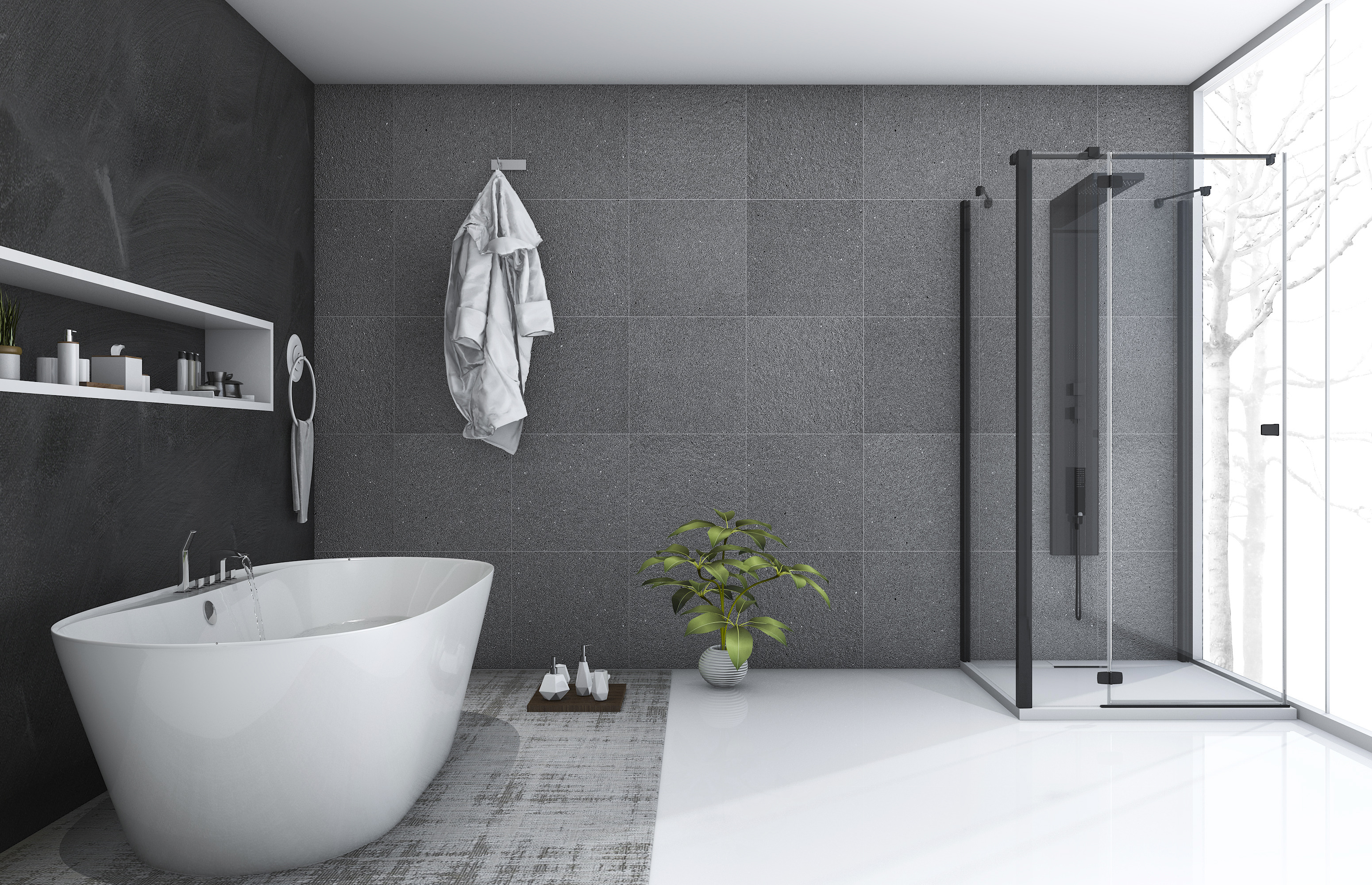O espaço do duche pode ser organizado de forma luxuosa, utilizando-se a paleta variada de cores dos painéis de duche, desde o cromo clássico, passando pelo branco neutro, doce rosa, dourado nobre, vermelho ousado, ultramar extravagante, preto profundo ou muitas outras cores da rica paleta.