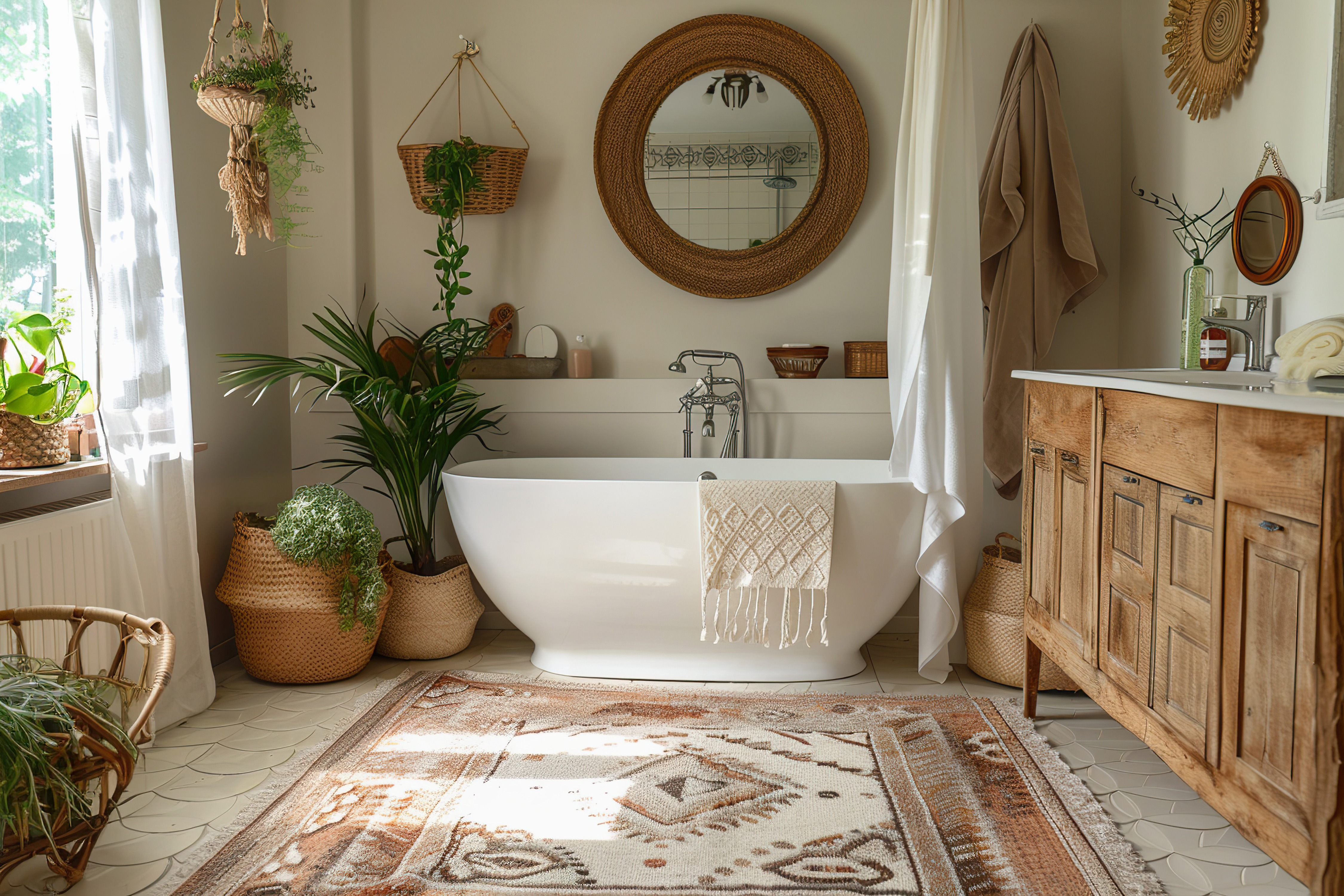 Que acessórios boho escolher para a casa de banho, criando um ambiente aconchegante?